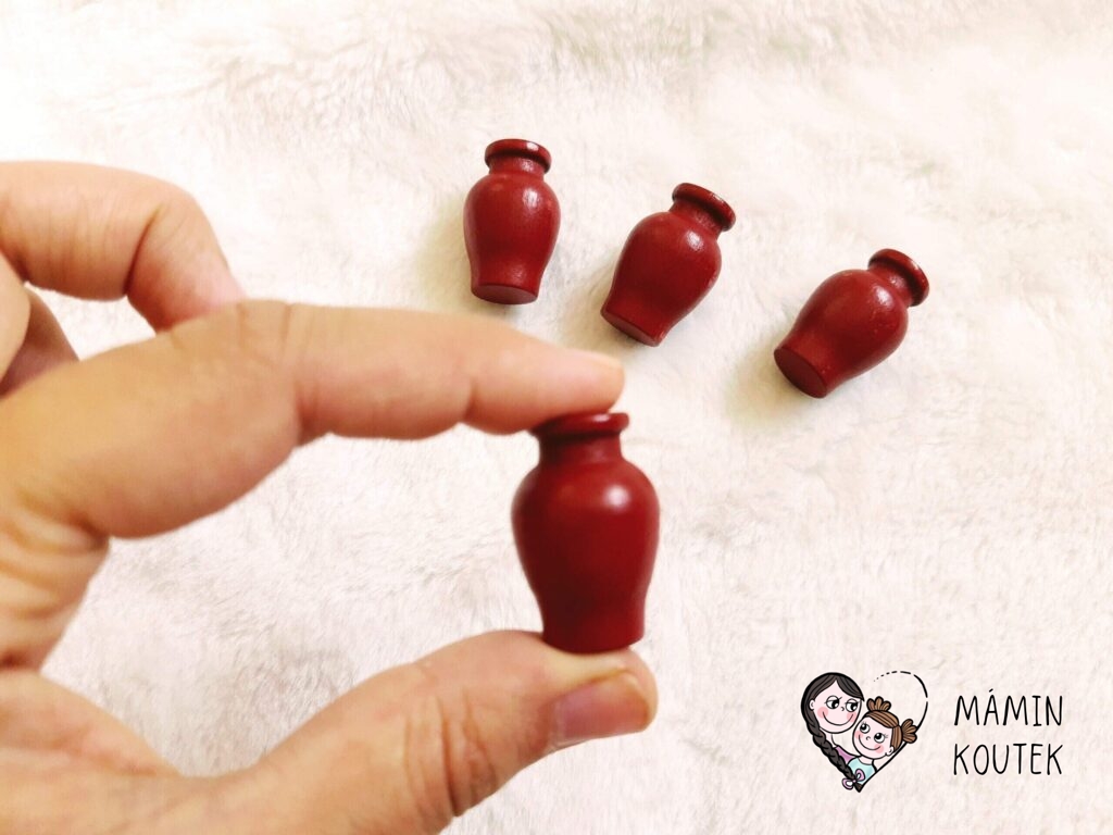 Některé suroviny jsou celkem malé (viz porovnání níže, jak vypadají v ruce dospělého), takže je dáváme od čtyřměsíční Naty raději dále. Ale starším dětem se s nimi bude pracovat určitě dobře.