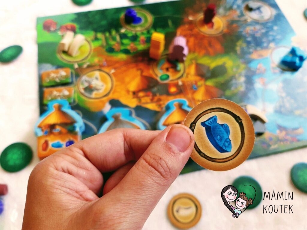 - bobule, ryba, nádoba, hrot, zub – pokud na toto pole dorazíte můžete si vzít 1 surovinu do své vesnice. Pokud je pole prázdné, neziskáváte nic.