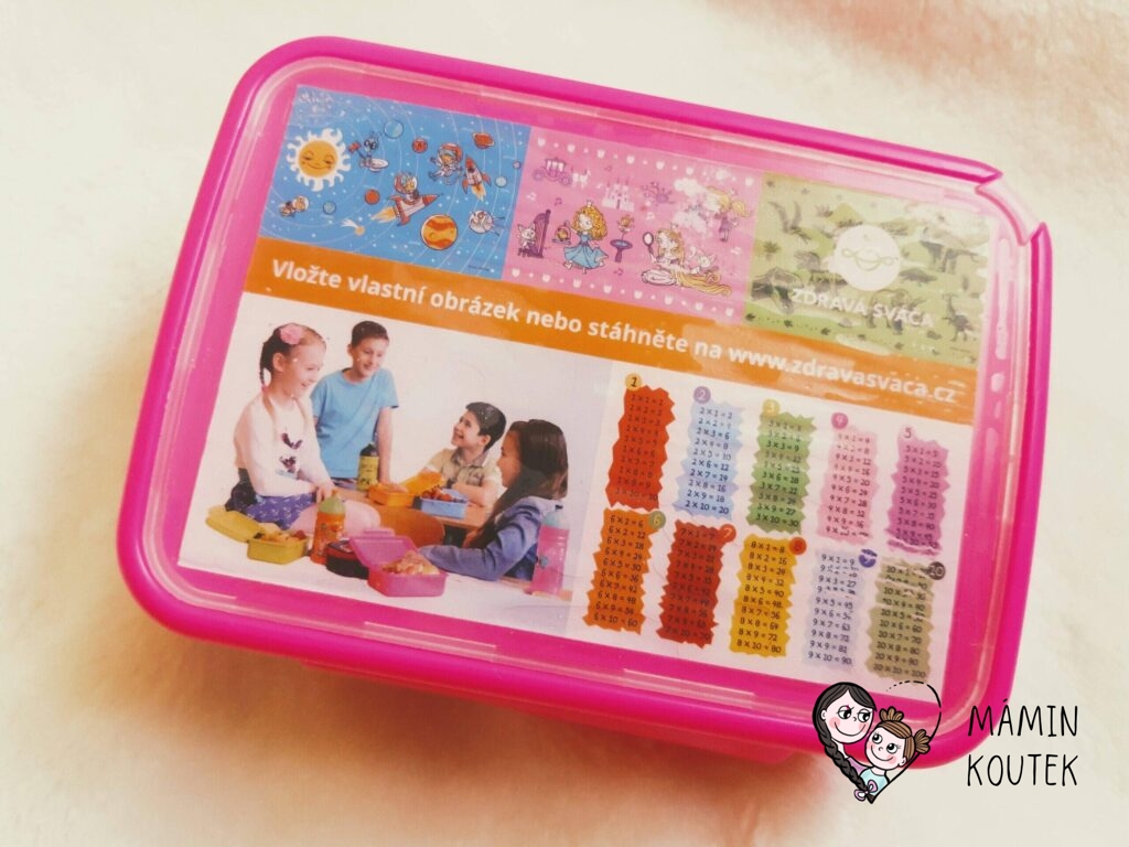 Svačinkový box má nahoře průhledku, pod kterou můžete dát libovolný obrázek. Pokud už máte Zdravou láhev, můžete si například stáhnout stejný obrázek jako je na lahvičce, takže budete mít ve výsledku krásný set. Na webu Zdravé sváči najdete také motivy rozvrhu hodin nebo malé násobilky. Případně lze využít i fotku nebo vlastnoručně nakreslený obrázek.