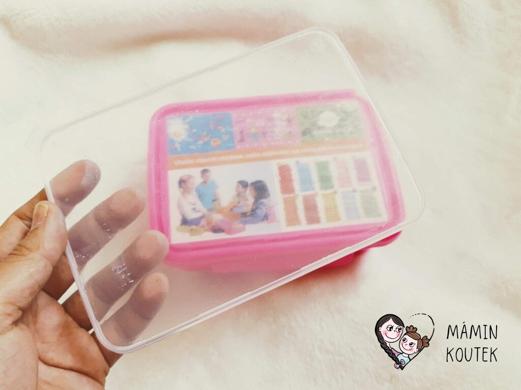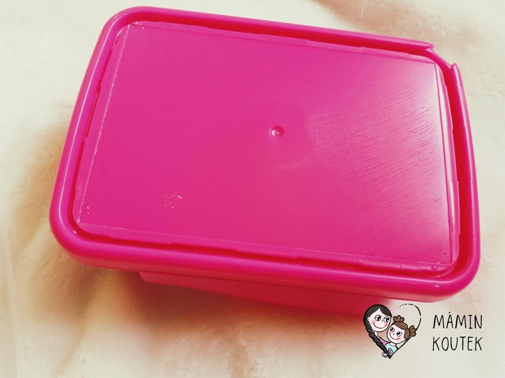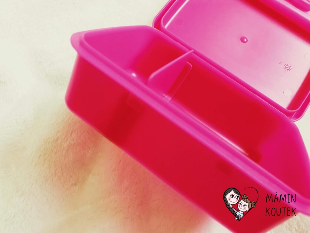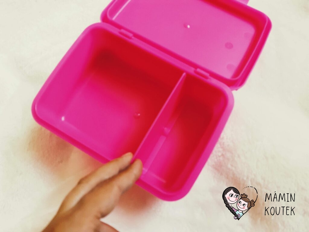 Svačinkový box je lehký, pevný a zpracování je už na první pohled kvalitní. Svačinka se do krabičky chystá hezky, hlavně díky přepážce, která se může snadno přizpůsobit obsahu. Box se dá umýt v myčce. Jen pozor, pokud budete mít obrázek pod průhledkou. Po hodinovém cyklu se nám tam tam dostala voda, takže příště budu raději obrázek vytahovat.