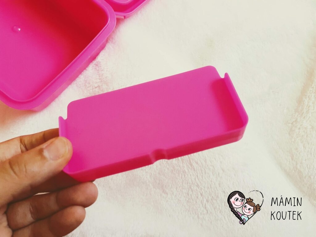 Líbí se mi, že se dají jednotlivé díly kombinovat a dokupovat. Pokud tedy máte doma třeba krabičky dvě, můžete pokaždé vytvořit jinou. Nebo pokud dítě ve škole ztratí dělící přepážku, stačí koupit novou a můžete dále krabičku naplno používat.
