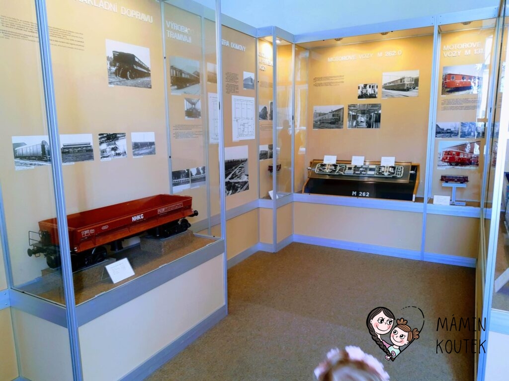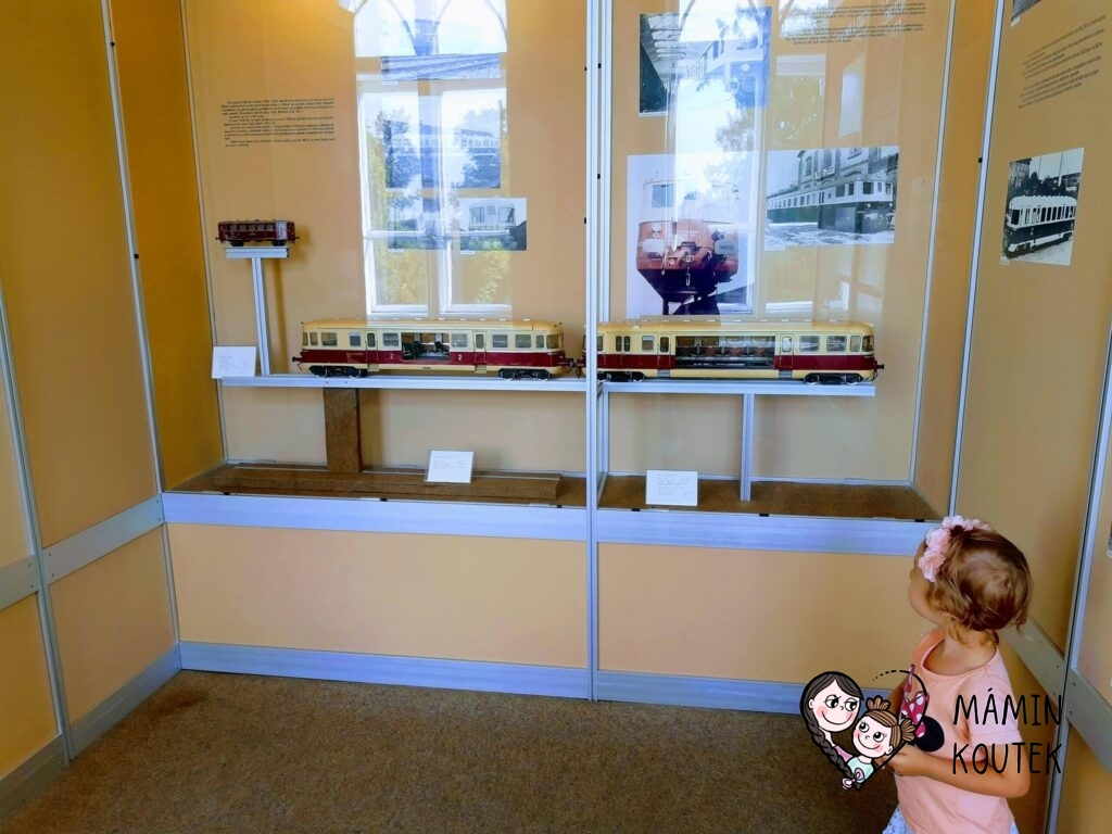 V prvním patře najdete kromě pokladny historický sál s modelovou železnicí. Jedná se o několikametrovou krajinu, kde jezdí hned několik vláčků. Zde jsem se zdrželi asi nejdéle – Beky se líbilo sledovat vláčky. Sem tam dokonce zastavily, takže jsme si je mohli pořádně prohlédnout.