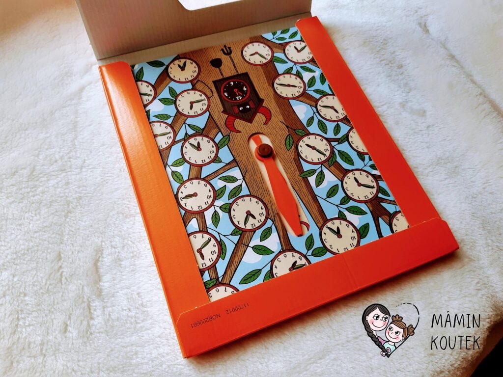 Hodiny jsou vyrobené z tvrdého kartonu. Jsou v papírovém obalu, takže mohou na první pohled jako knížka vypadat. Ale z obalu se vytahují a poté dítě pracuje jen s dvěma uprostřed spojenými deskami, které může různě položit, postavit, opřít a podobně.