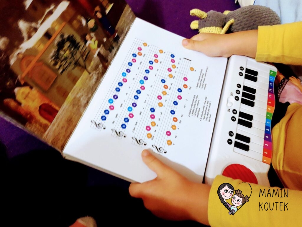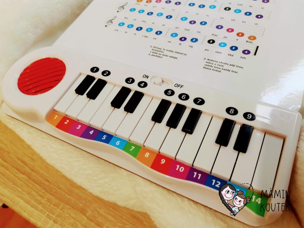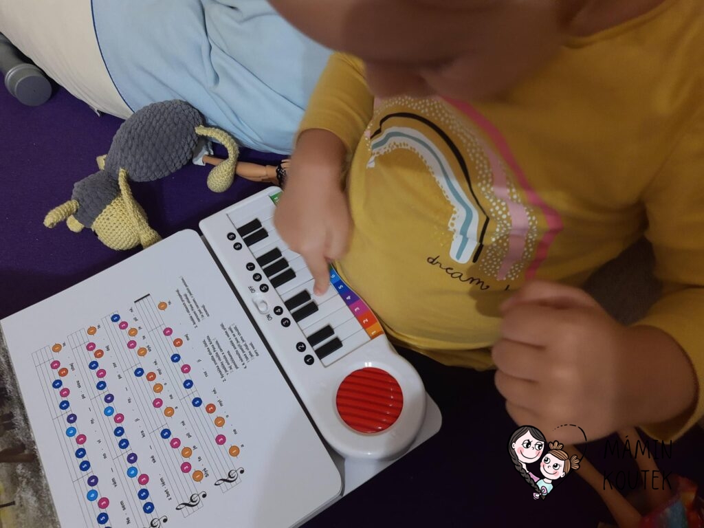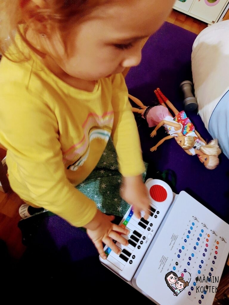 Pianko se dá využit nejen na koledy, ale i na běžné hraní. U nás Beky (3 roky) ještě koledy zahrát neumí, ani podle barevných notiček, ale když koledy spolu zpíváme, hraje do toho jak ji napadne a líbí se jí to. Příští rok už nás snad podpoří i správným hudebním doprovodem.