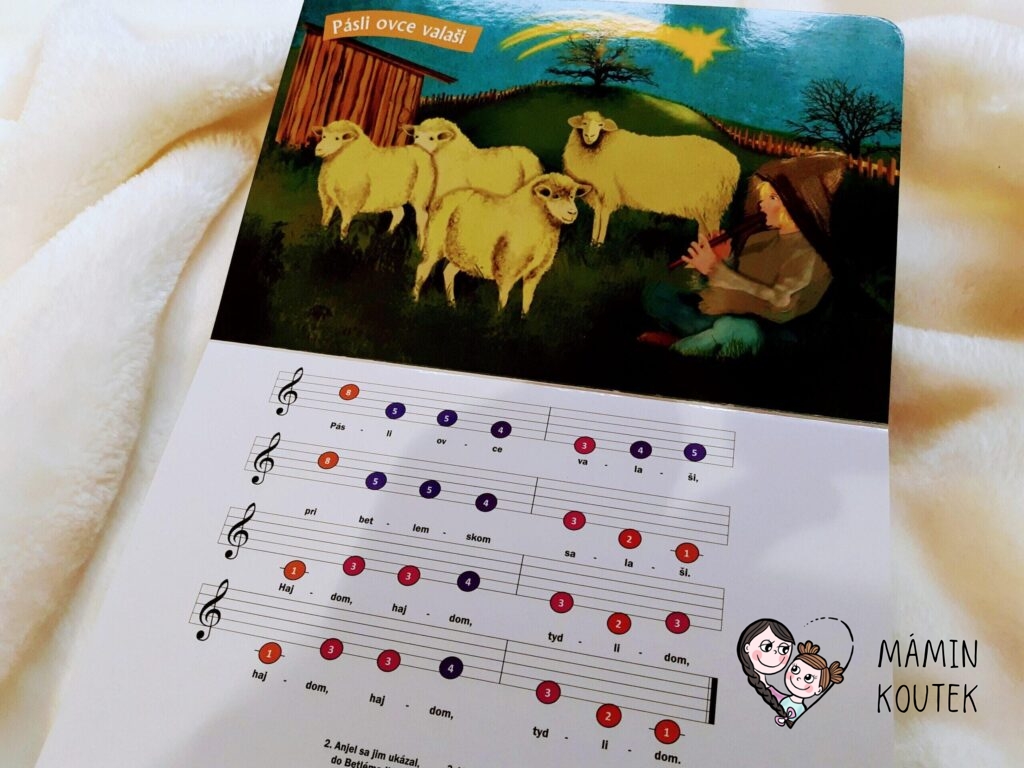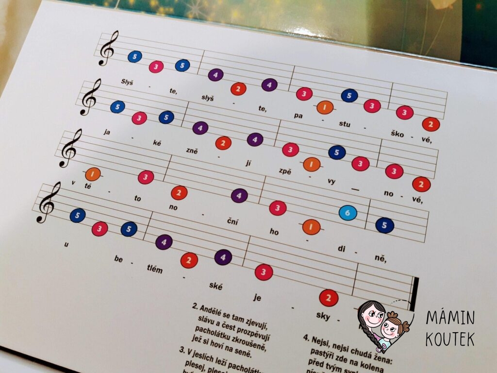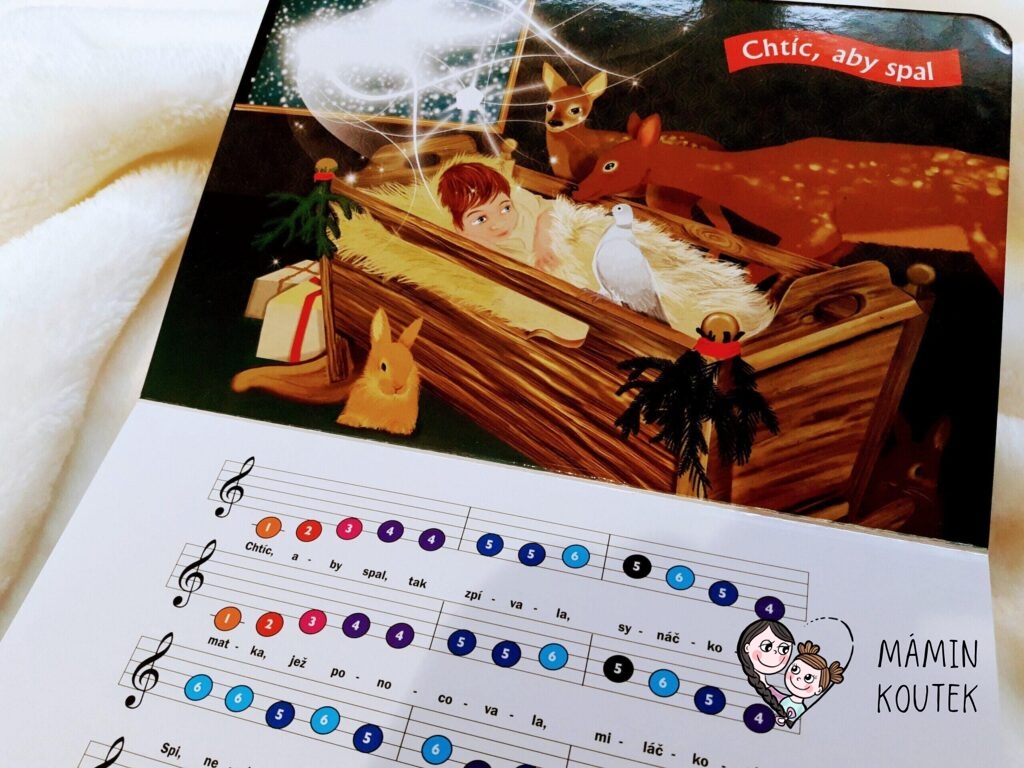 Kniha dětem přibližuje Vánoční koledy jiným způsobem, než je běžné. Děti se totiž mohou přímo díky piánku zapojit. Jsou vybrány nejznámější vánoční písně a u každé jsou uvedeny i další sloky, což se mi líbí (v některých knihách bývá jen první sloka, což mi přijde škoda).