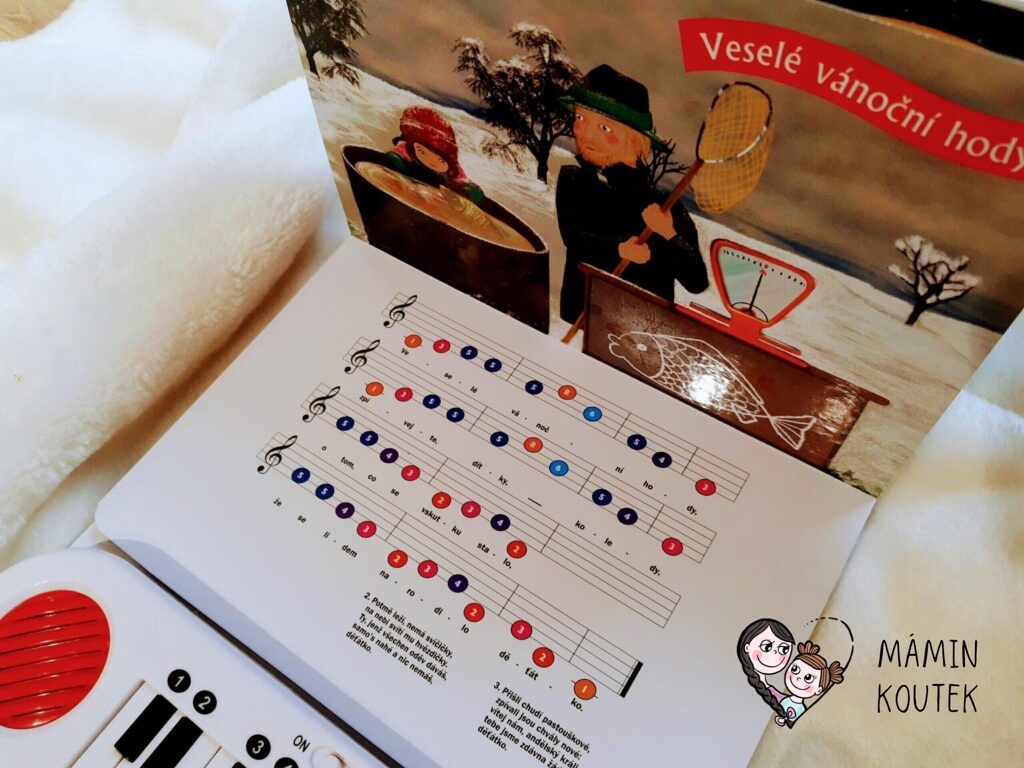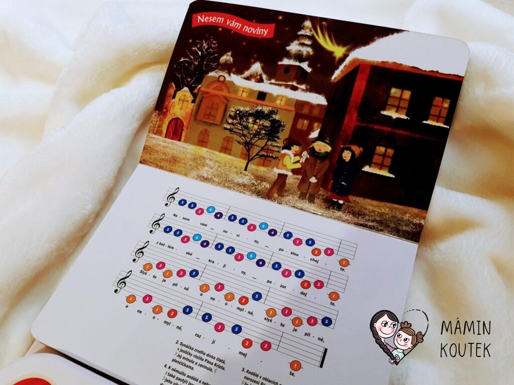 Nebudu vám samozřejmě vykládat, že knížka má pianko jako klasické. Rozdíly tam jsou, a nezapírám, že velké. Ale pro poznání toho, jak piano funguje bohatě stačí. Navíc ve spojení s knížkou si mohou snadno zahrát koledy i ti, kteří jinak na klavír neumí.