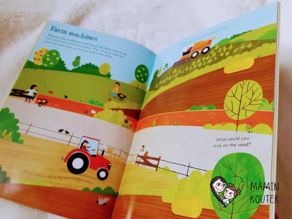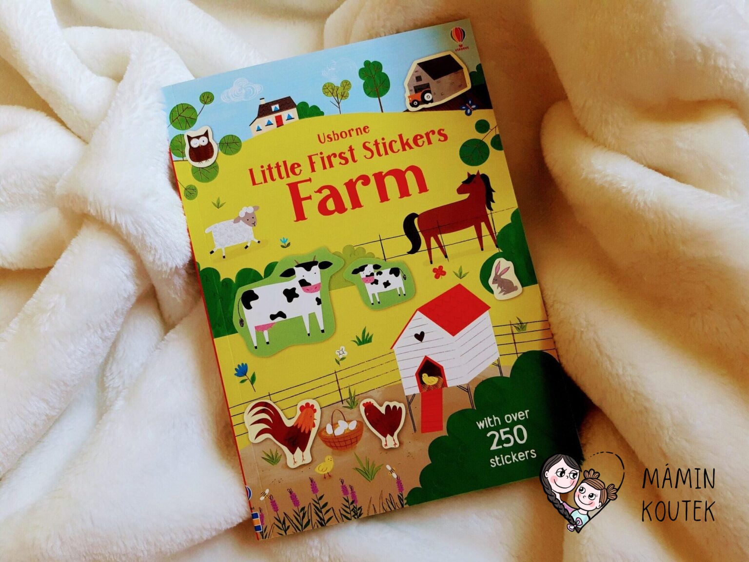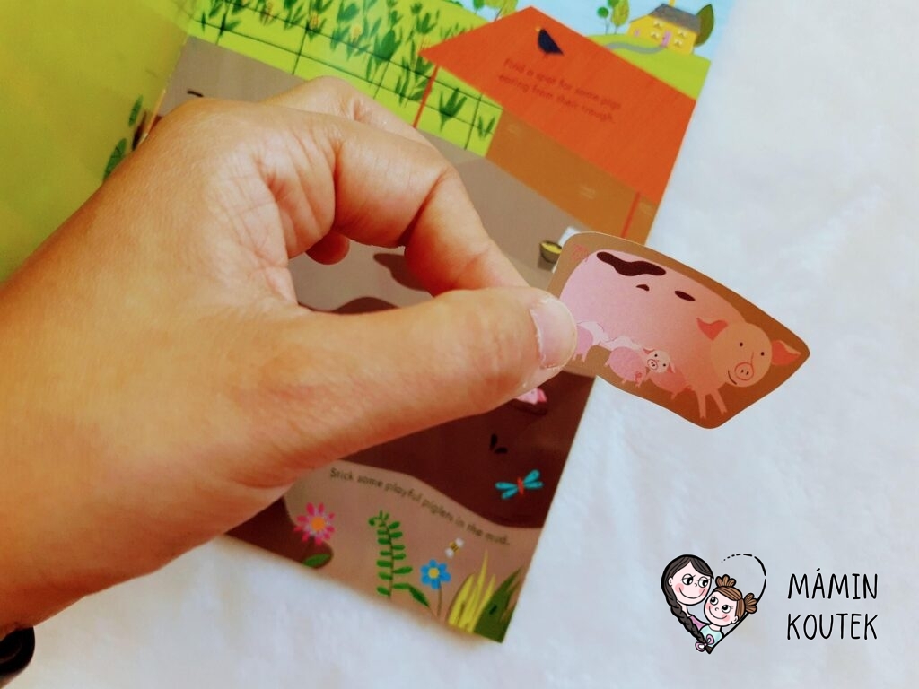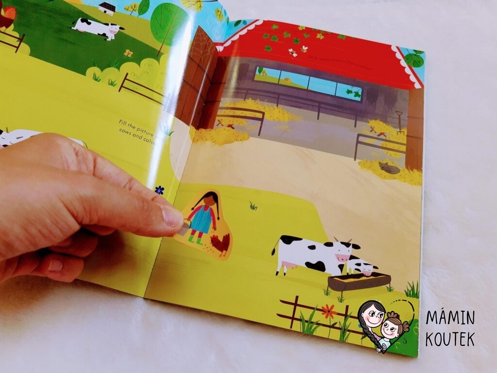 Další ze zábavných sešitů od Nakladatelství Usborne, který jsme vyzkoušeli díky spolupráci s Little Duckie Bookshop, je nalepovací knížka o farmě. Nebo spíše knížečka, protože je menší než třeba nálepky princezen, které už máme doma delší čas.