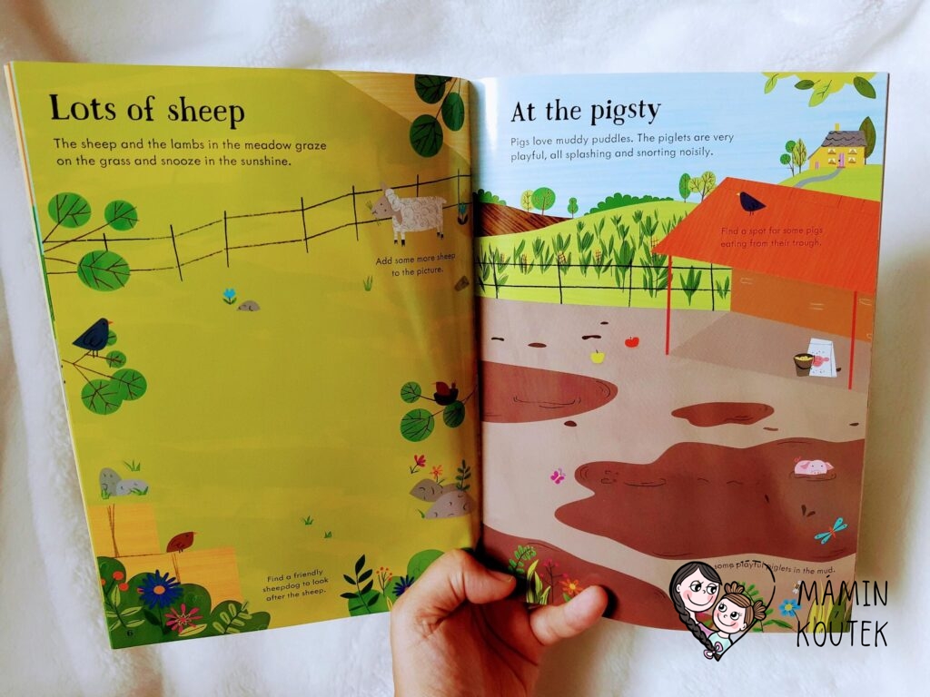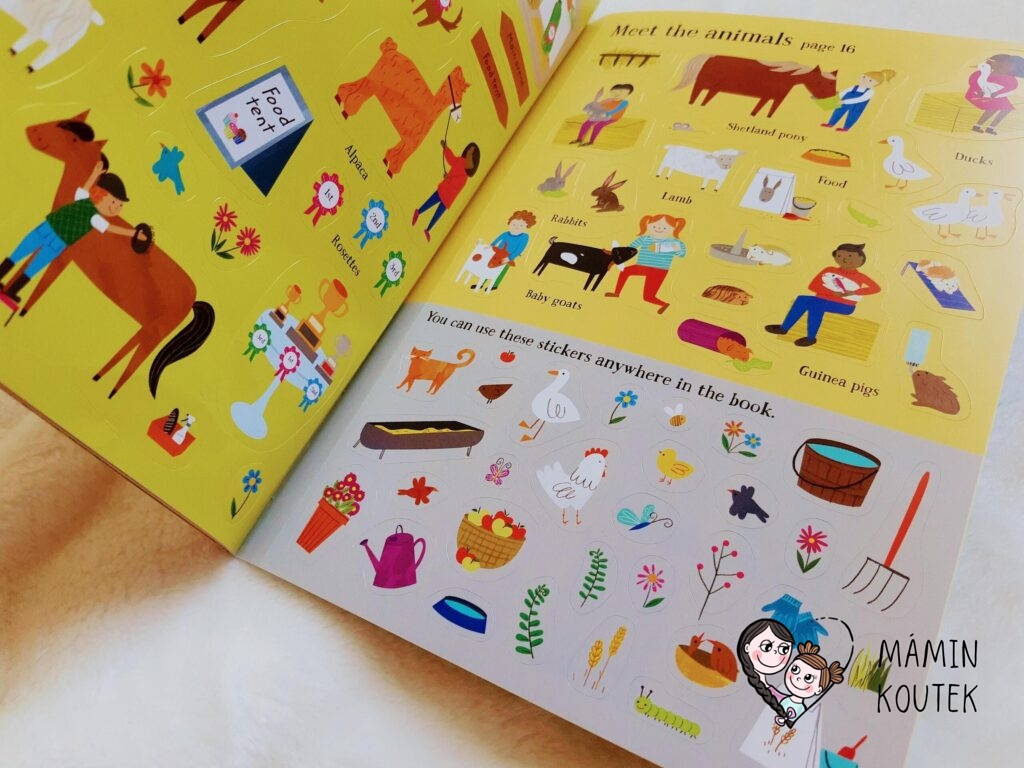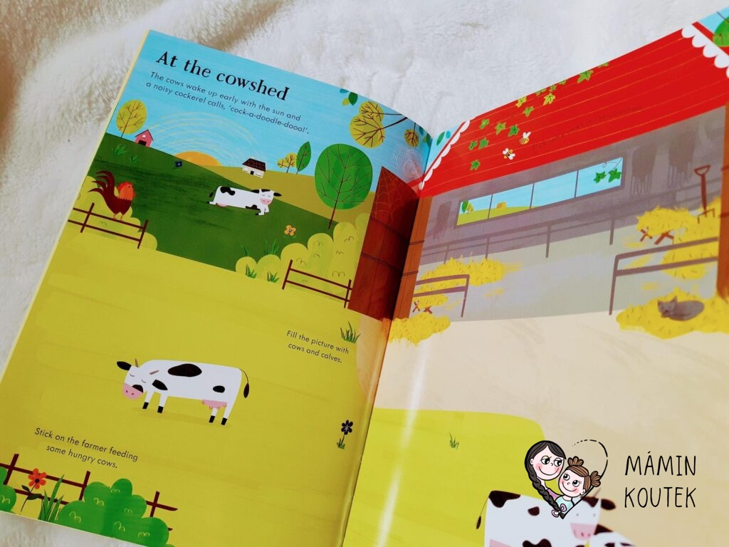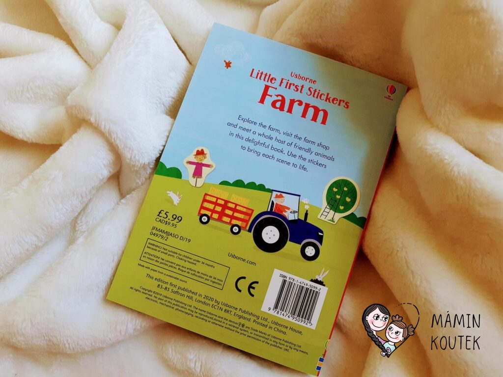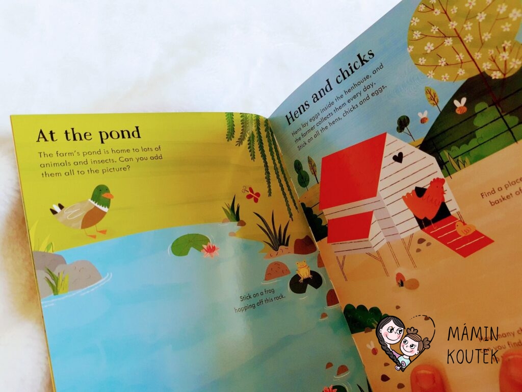 Další ze zábavných sešitů od Nakladatelství Usborne, který jsme vyzkoušeli díky spolupráci s Little Duckie Bookshop, je nalepovací knížka o farmě. Nebo spíše knížečka, protože je menší než třeba nálepky princezen, které už máme doma delší čas.