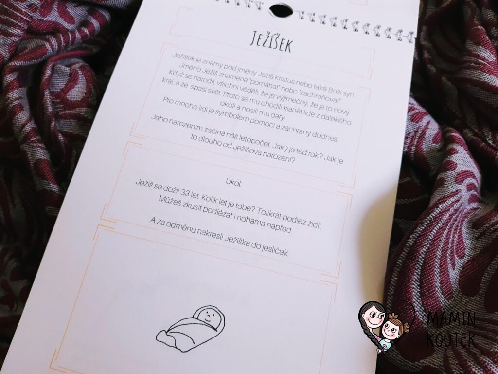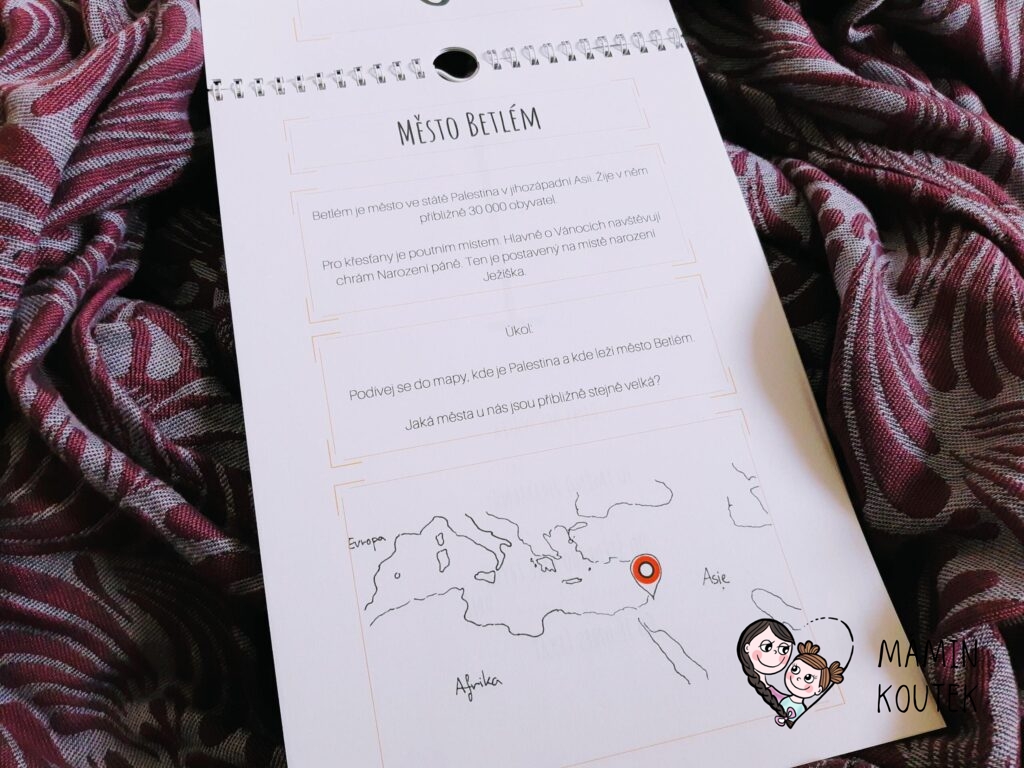 Téma Betlému je krásně zpracované – děti se každý den dozvídají něco nového o hlavních postavách, zvířátkách i symbolech. Nesladkář je nezahltí nějakou odbornou teorií, přesto ale děti získají lepší představu, co se v Betlémě vlastně stalo a kdo tam byl.