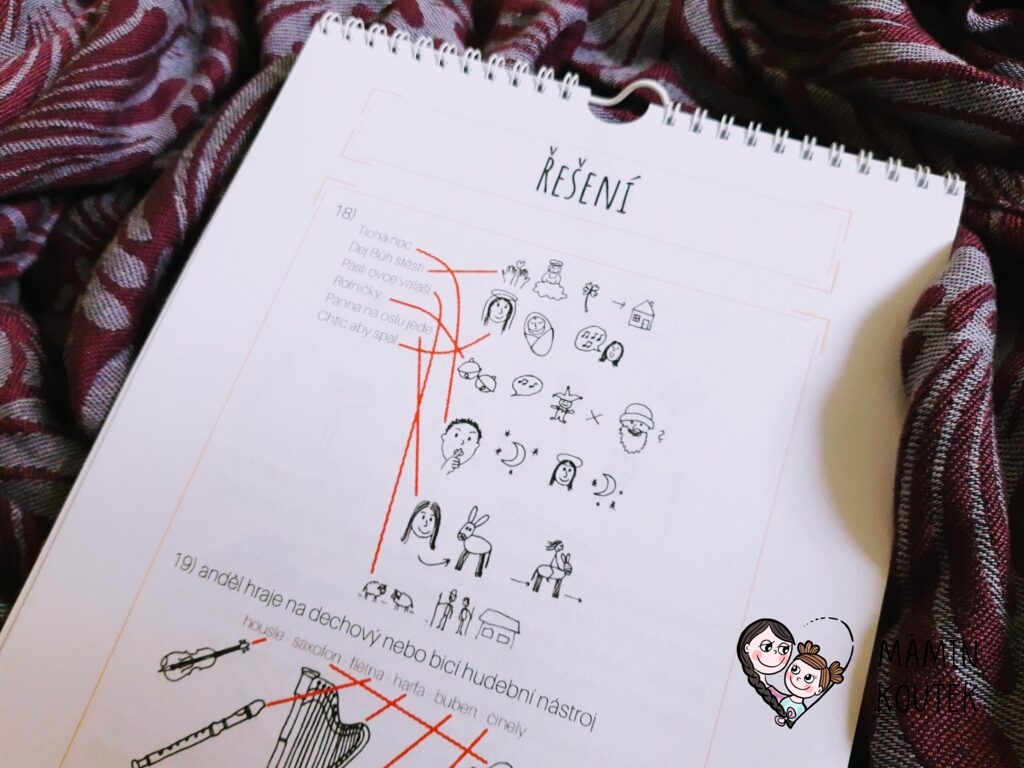 V závěru kalendáře děti najdou další obrázky, které si mohou vybarvit, a nechybí ani řešení úkolů. Jsou zde také uvedeny vánoční zvyky a pravidla ke hře Bingo, která je součástí leporela.