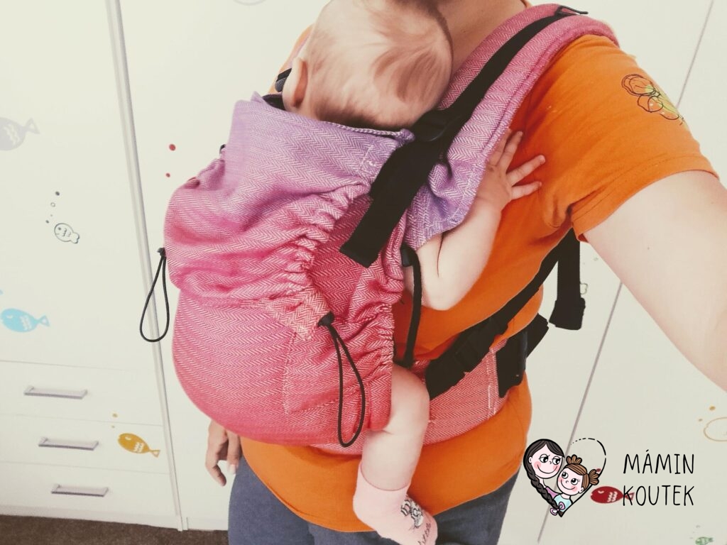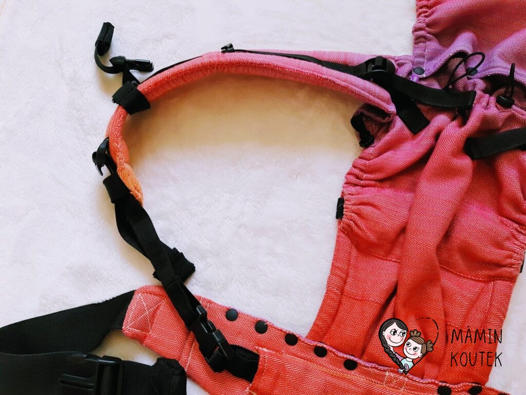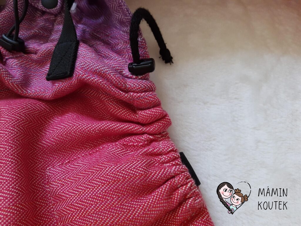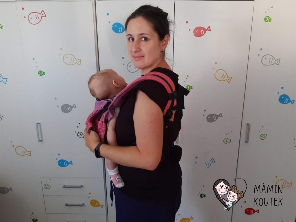 Nosítko má spoustu vychytávek – stahování na patentky, kapsičky na přezky, odnímatelná kapuce dva způsoby možnosti zapnutí ramenních popruhů… Líbí se mi také stahování zádovky, které bylo komfortní a snadné. Jen někdy se nám pojezd povolil a zádová opěrka tím pádem zvětšila, takže jsme museli upravovat. Bohužel to nedrželo úplně tak, jak má, a to byla Naty ještě celkem lehká.