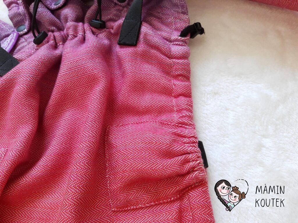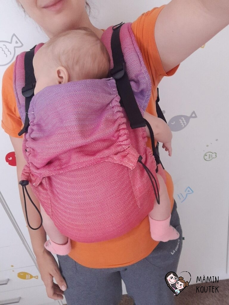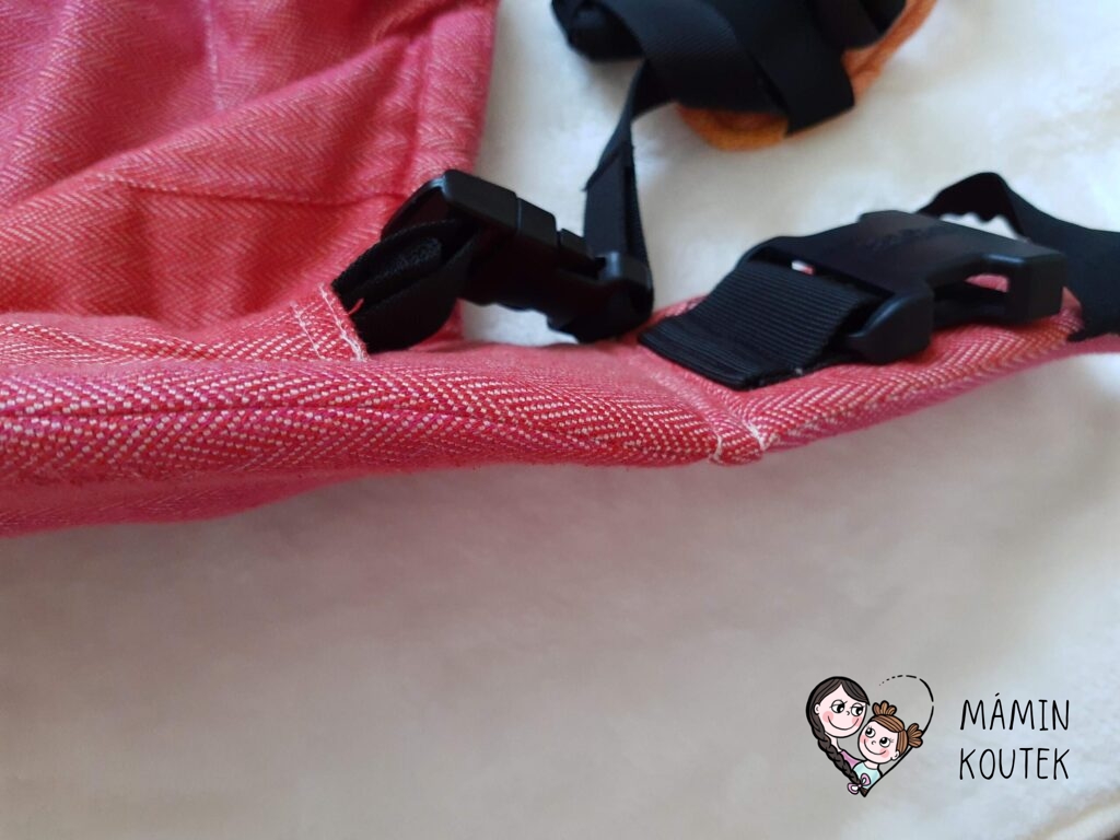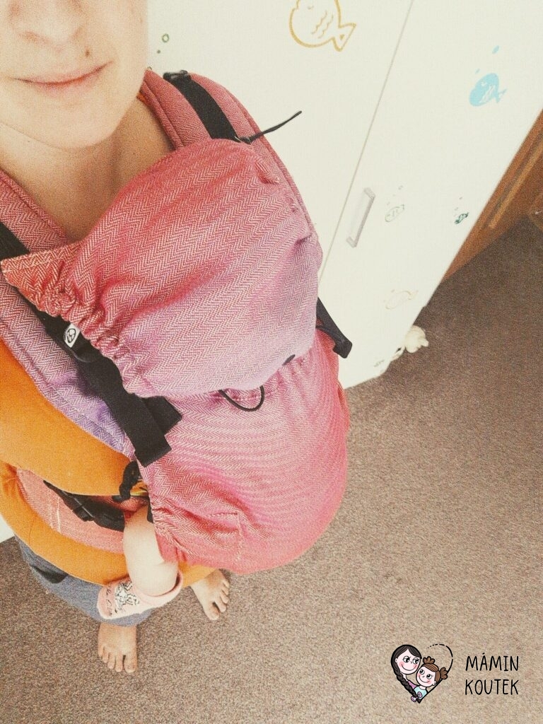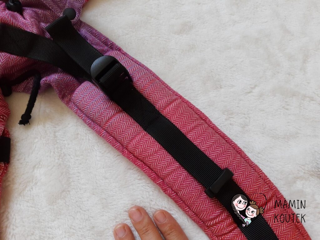 Nosítko má spoustu vychytávek – stahování na patentky, kapsičky na přezky, odnímatelná kapuce dva způsoby možnosti zapnutí ramenních popruhů… Líbí se mi také stahování zádovky, které bylo komfortní a snadné. Jen někdy se nám pojezd povolil a zádová opěrka tím pádem zvětšila, takže jsme museli upravovat. Bohužel to nedrželo úplně tak, jak má, a to byla Naty ještě celkem lehká.