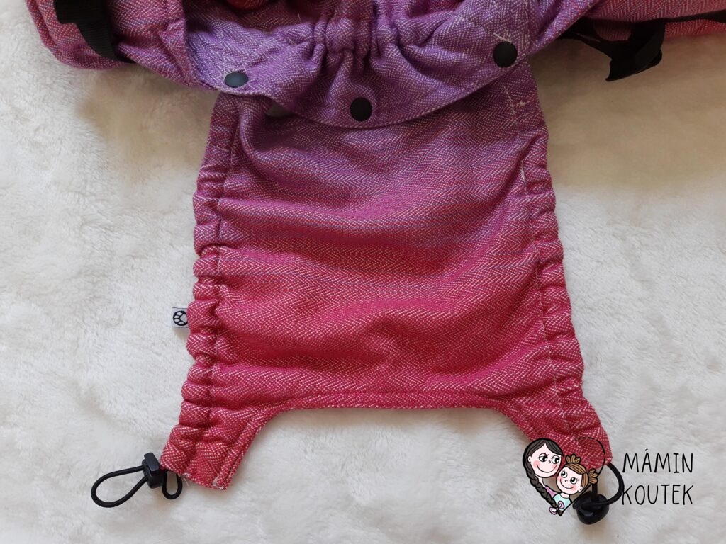 Nosítko má kapuci, která je opět přichycena pomocí patentků a dá se oddělat. Při spaní se zachycuje na plastový háček, který jde libovolně po ramenním popruhu posunout.