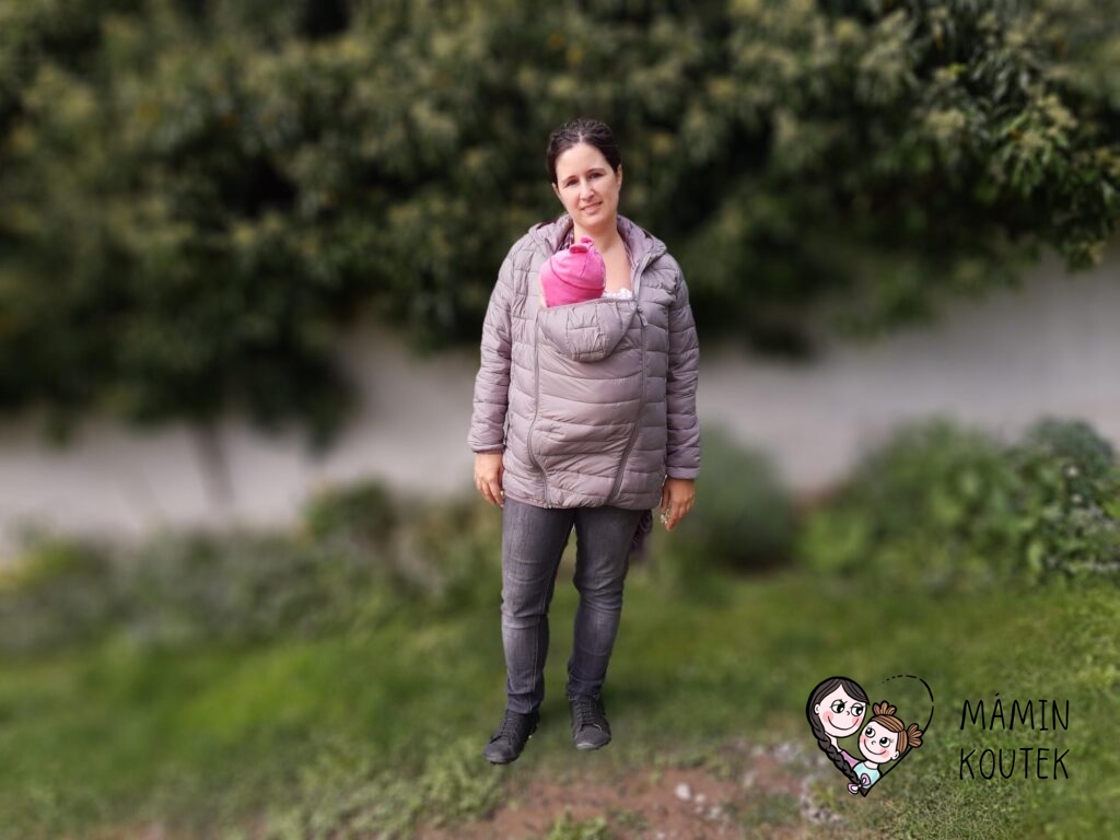 Původně jsem na období jaro/podzim používala nosící mikinu, ale přeci jen v dešti to nebylo nic moc. Mikina nemá navíc kapuci, takže byl problém i při větru. Nosící bunda Esmara naopak zvládne krátké mrholení a součástí jsou i dvě kapuce (ta pro miminko je úplně rozkošná). Ještě by mohla být dořešena ochrana krku, to mi trochu chybělo. Ale na to, že se Lidl nespecializuje na nošení, tak je bunda fajn.