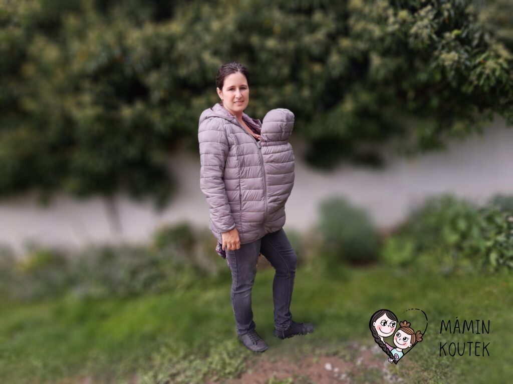Já běžně nosím velikost M, tedy vybírám mezi 38 a 40. Bundu jsem zkoušela přímo v obchodě i s navázanou Naty v šátku a velikost 38 jsem měla relativně dobrou, ale přes ramena na šátku mírně táhla. Zvolila jsem proto velikost 40 a ta sedí krásně. Dokonce i bez dítěte nebo s nosítkem.