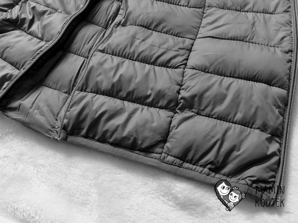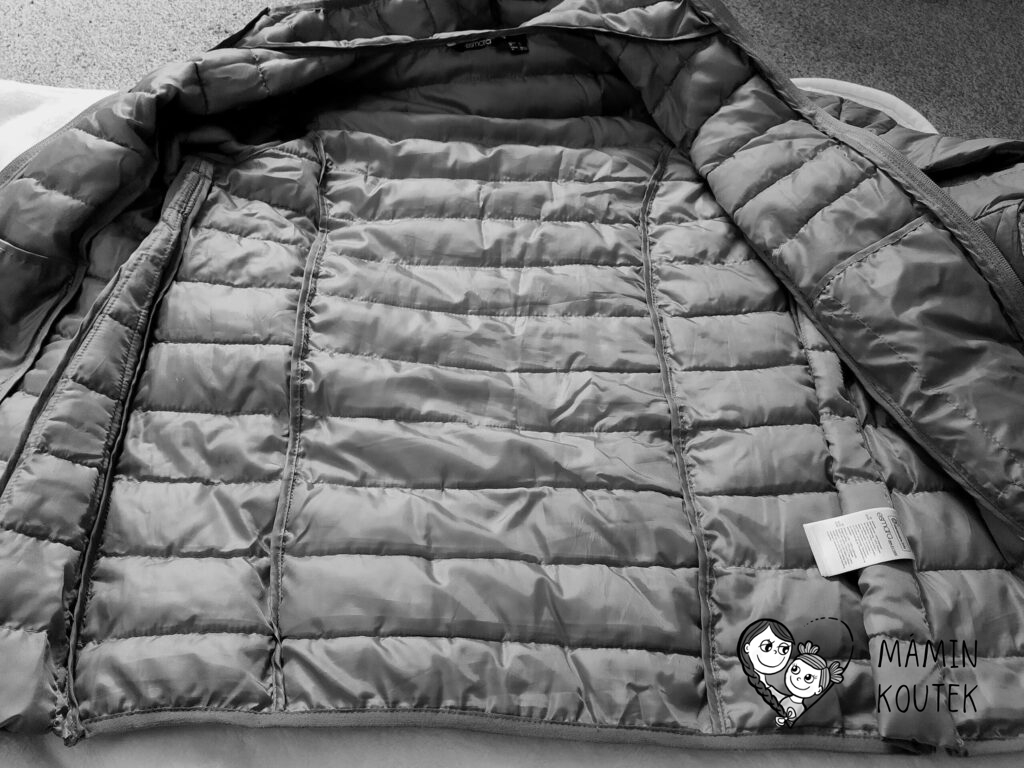 Bunda je ve stylu péřovky, ale tenká, takže doporučuji na jaro či podzim. Je hodně lehká a dá se také složit tak, že nezabere moc místa.