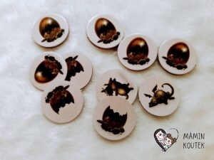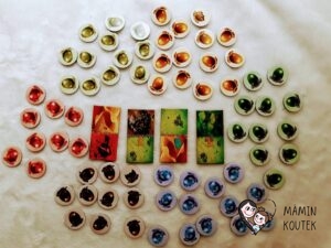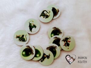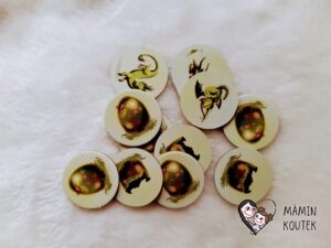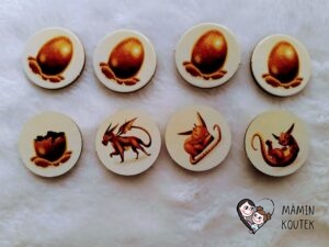 Krajinám pak odpovídají i žetony vajec. Z jedné strany mají obrázek vejce, na druhé straně pak můžeme najít různé obrázky draků nebo prázdné vajíčko.