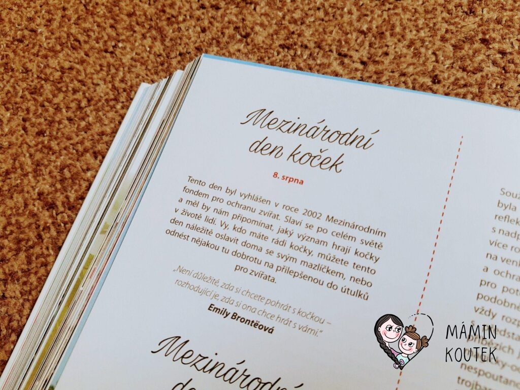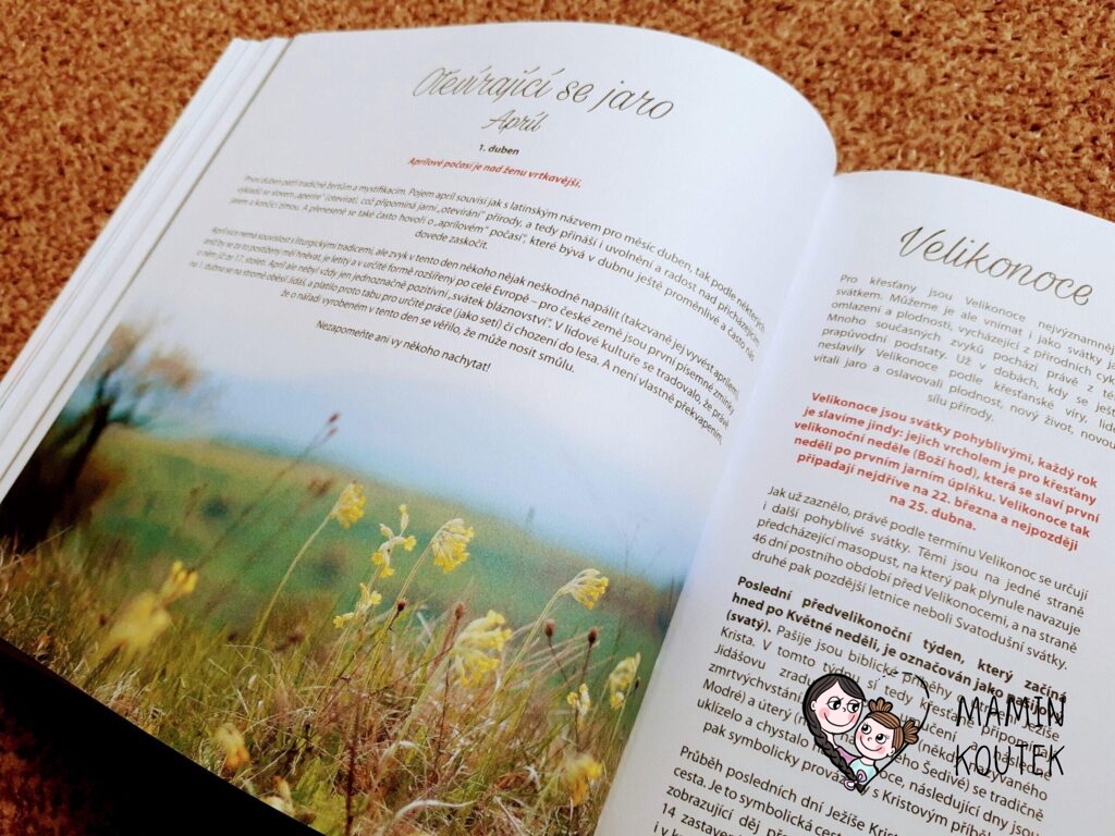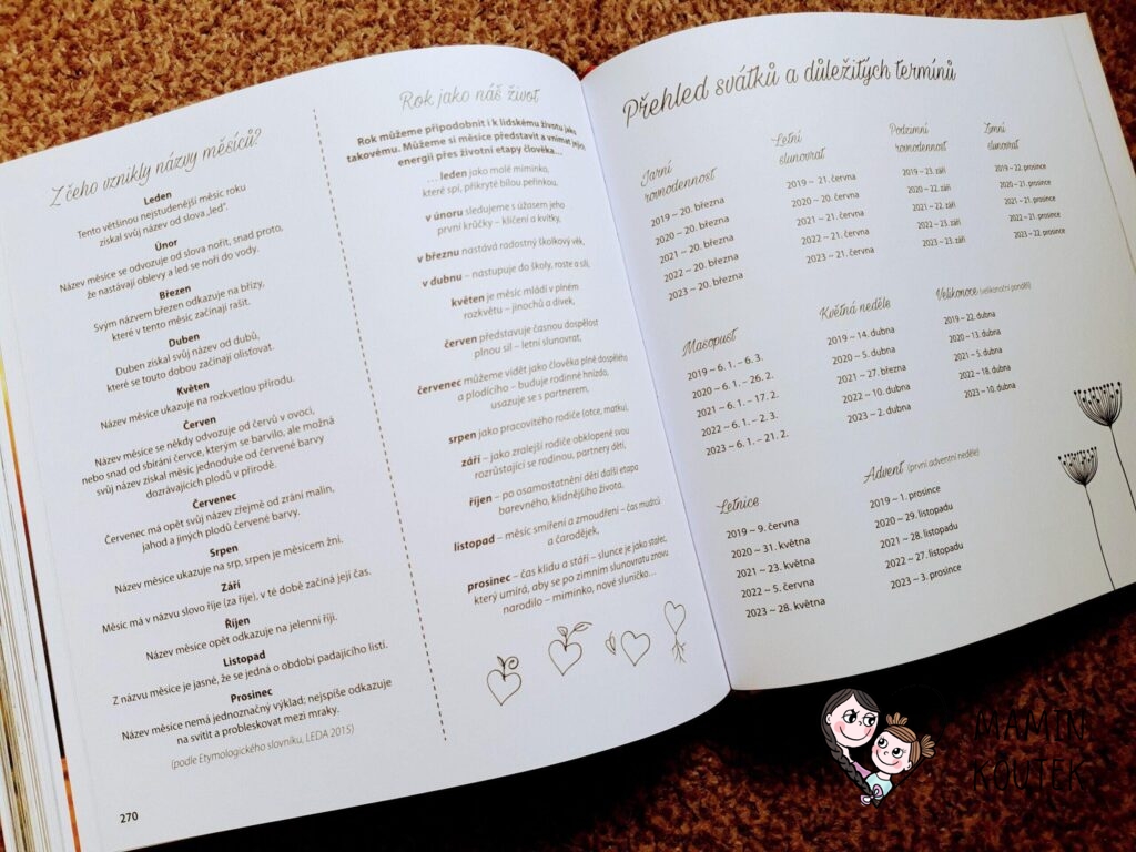 Kniha mě překvapila tím, jak je obsáhlá a podrobná. Ke každému měsíci v ní najdete hned několik tradic, akcí či rituálu. K tomu spousta tipů na tematické tvoření, aktivity a pokrmy. Kniha není psána primárně pro děti, aby si ji četly samy, ale s dětmi ji rozhodně využijete – můžete jim totiž povyprávět, o čem vlastně daný svátek je, jaká je tradice nebo si společně třeba něco vyrobíte či upečete.