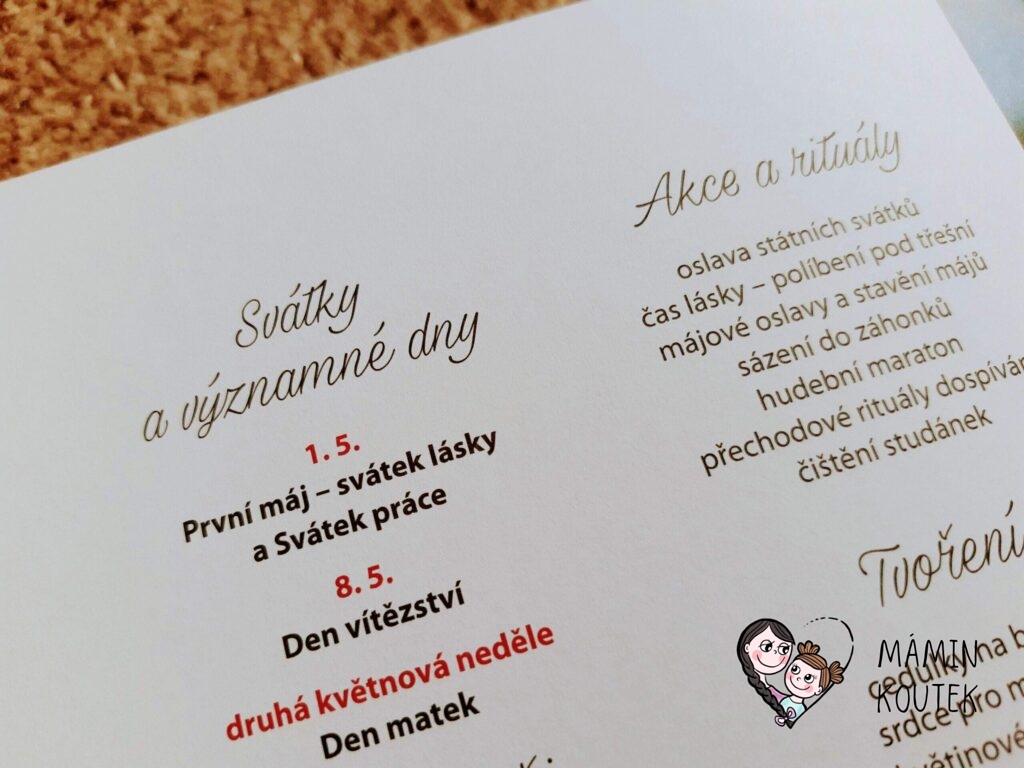 Dříve jsem neřešila, jestli dětem nějaké tradice ukazuji nebo je dokonce osobně prožíváme, ale po prolistování knihou jsem si uvědomila, že v tom máme velké mezery. Tím, že žijeme ve městě nás část tradic úplně obchází, přitom není problém někde vyjet nebo dětem i doma ukázat, co se vlastně slaví, jak a proč.
