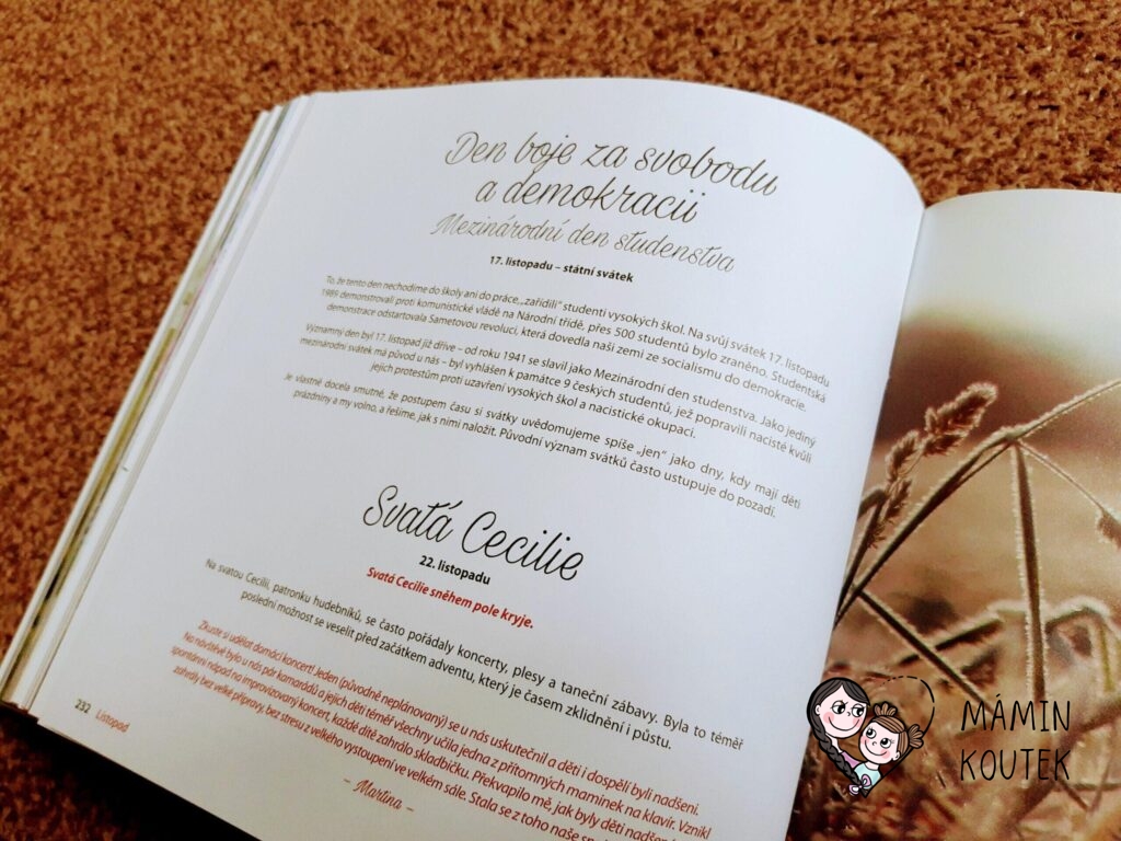Svátky jsou popsány nejen teoreticky a ź historického pohledu, ale najdeme zde i inspiraci, jak je oslavit s rodinou a dětmi. A co si můžeme přitom vyrobit nebo užít.