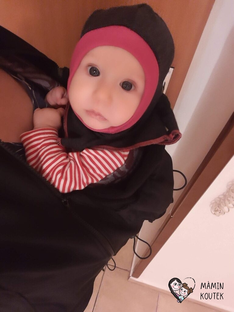 Nejvíce využíváme kuklu, v podstatě na podzim jsme ještě nevytáhli ani čepici. Nosíme jen kukličku, a to nejen do šátku, ale i na běžné nošení. Je krásná na pohled (ten dětský kukuč je prostě kouzelný), ale hlavně nemusí řešit žádné nákrčníky a ani se nebojím, že by Natálku ofouklo.