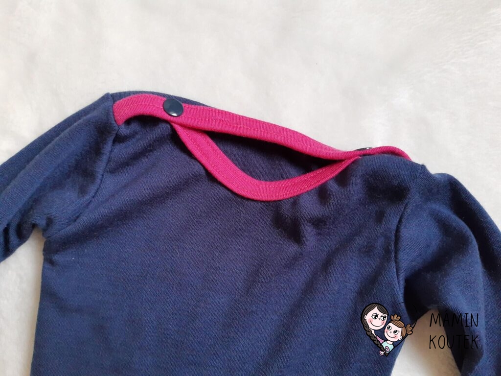 U krku je zapínání po obou stranách na patentky, stejně jako přes plenu. Navíc jsme přímo k body dostali také extendor, díky kterému body vydrží minimálně tři velikost.