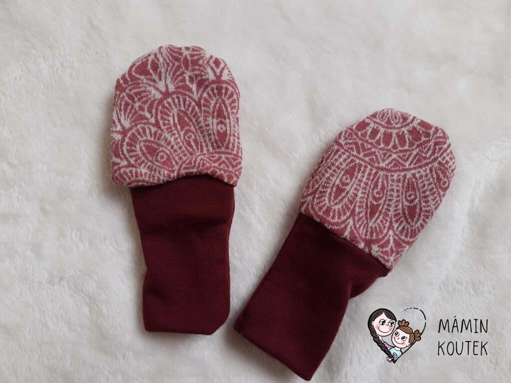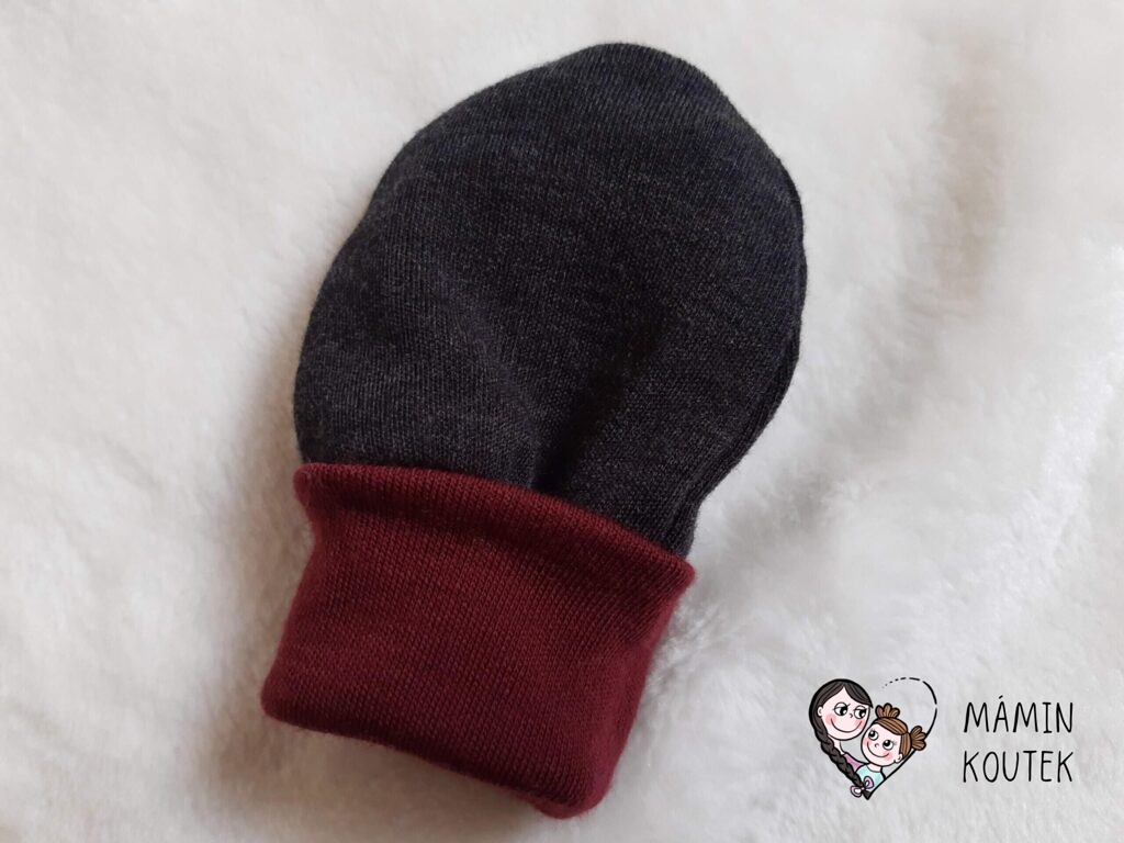 Merino rukavičky jsou oboustranné a ušité z dvouvrstvého merina. Mají dlouhé náplety, aby dětem nefoukalo na ruce. Velikost máme od půl roka do roka. Cena je 220 Kč a máme je odsud.