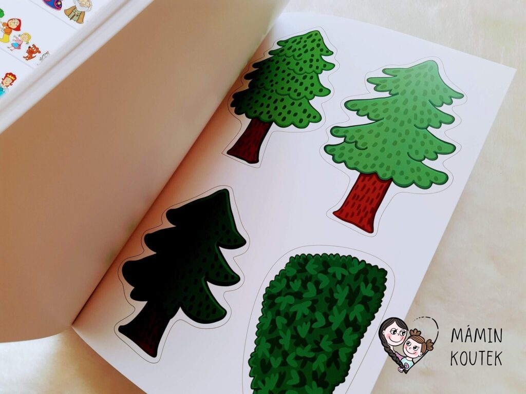 Divadélko můžete hrát jen tak nebo si vytvoříte vlastní jeviště, třeba z krabice. Jako pozadí budou uvedené scenerie, dopředu můžete nalepit oponu, která je součástí sešitové knížky.