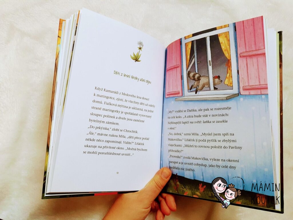 Ve třetím díle se opět setkáváme se čtveřicí zvířecích kamarádů – lišákem Míšou, laňkou Daňkou, divokým prasátkem Chrochtíkem a mývalkou Makovičkou. Začíná nový školní rok a děti z lesní školky Medovníčci opět svým smíchem zaplní Fialkovou mýtinku a maringotku, kterou tam mají přichystanou. Nechybí ani Davídek nebo Pavla, které mohou čtenáři znát z předchozích dílů.