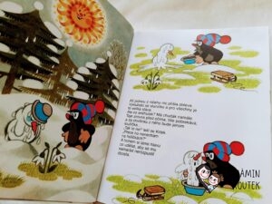 Krteček je jednou z postav, kterou si pamatuji ze svého dětství. Populární je ale i dnes. Doma máme s jeho motivem spoustu věcí, Beky ho má ráda, a tak jsem počítala, že knížka zaujme. A měla jsem pravdu.