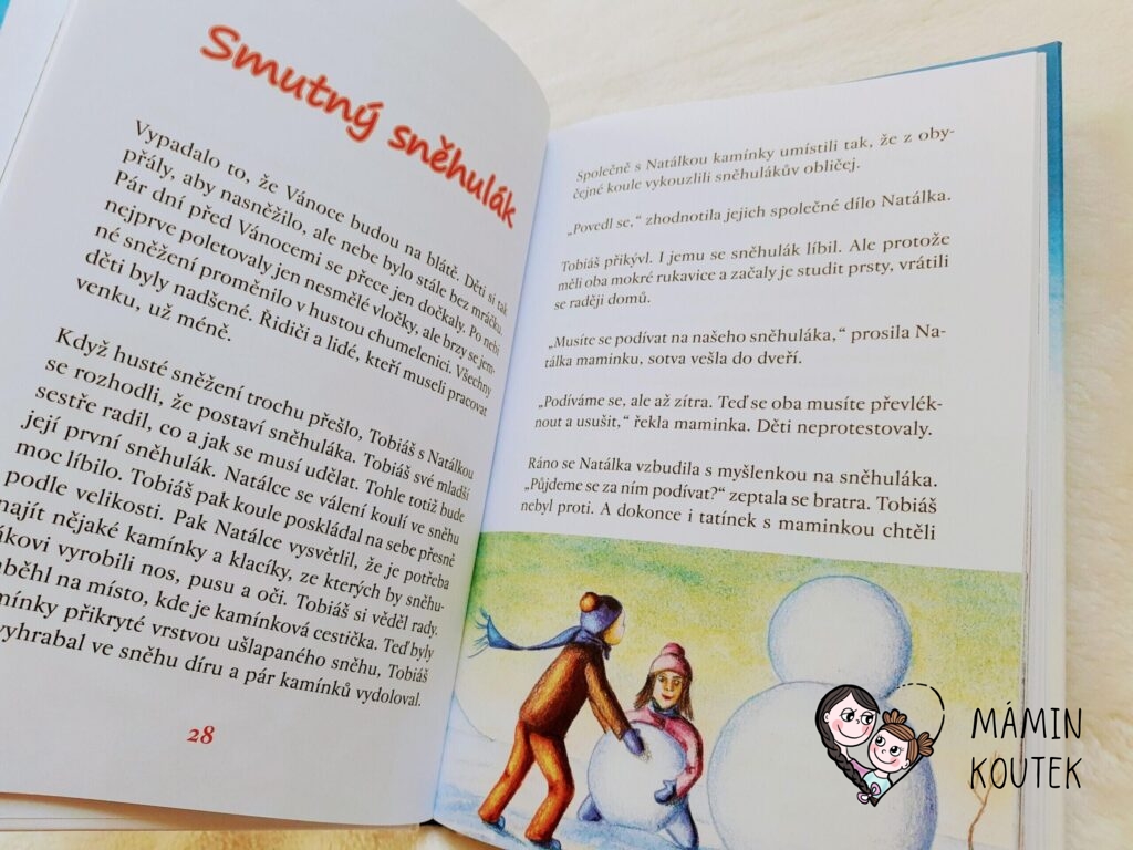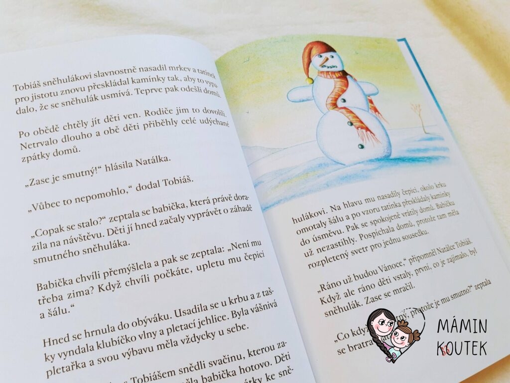 Smutný sněhulák – konečně nasněžilo a Tobiáš s Natálkou postaví sněhuláka. Druhý den se na něj jdou podívat s rodiči, jenže sněhulák je nějaký smutný. Maminka přeskládá kamínky na hlavě tak, aby se usmíval. Další den je ale opět smutný. Zkusí mu dát čepici a šálu, kdyby mu bylo třeba zima, ale sněhulák je po chvíli zase smutný. Tak postaví vedle něj ještě jednoho sněhuláka, aby nebyl sám…