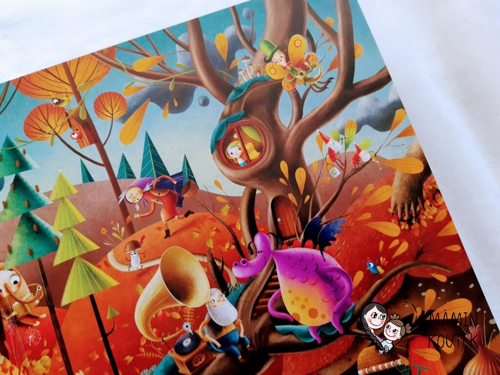 Podzimní říjen je plný práce – zvířátka i pohádkové bytosti uklízejí listí, chystají potravu na zimu, trpaslíci barví listí a pohádkový dědeček pouští pohádky. Nebo hudbu?