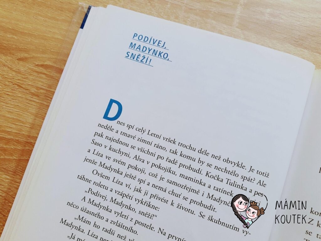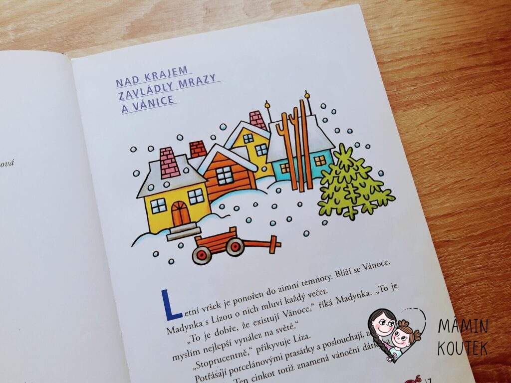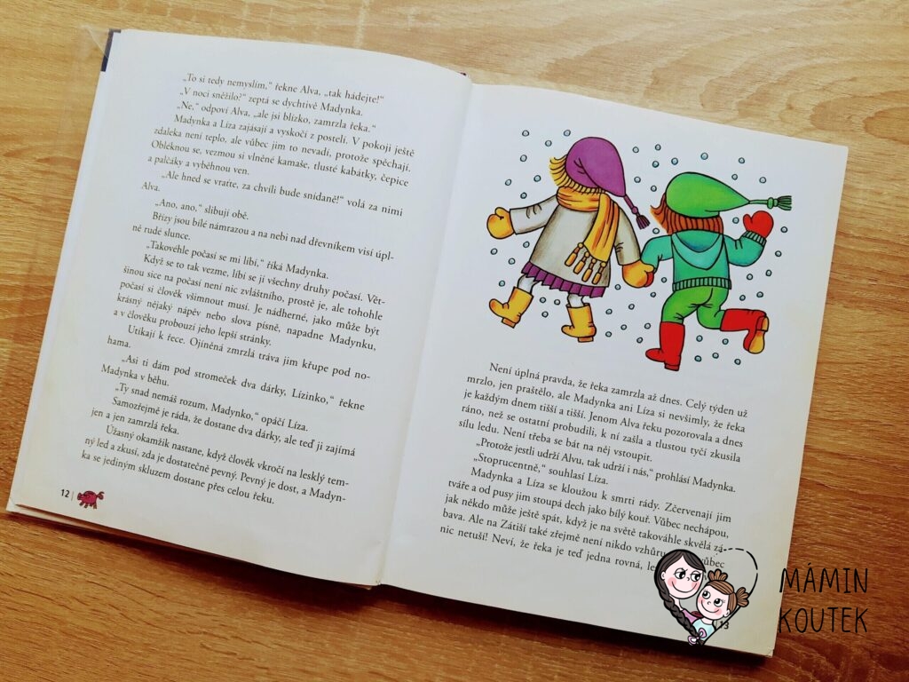 V prvním příběhu se setkáváme s Madynkou a Lízou, které se chystají na Vánoce. Jednoho rána zjistí, že zamrzl potok, a tak vyrazí klouzat po řece. Dokloužou až na statek Jabloňovku a jsou tak unavené, že se jim ani nechce na cestu zpět…