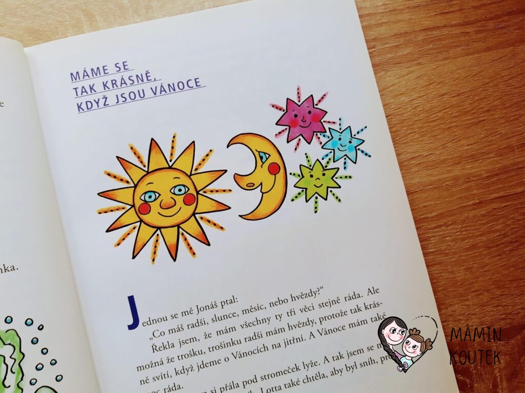 V knize se čtenáři setkají s hrdiny, které možná budou znát – s Lottou z Rošťácké uličky, kamarády z Bullerbynu, Madynkou a dalšími postavami. Poznají také zcela nové, například Kajsu Nebojsu. Kniha totiž přináší jak známé příběhy, tak novinky. A vše přitom spojuje jedno – zaměřují se na Vánoce.