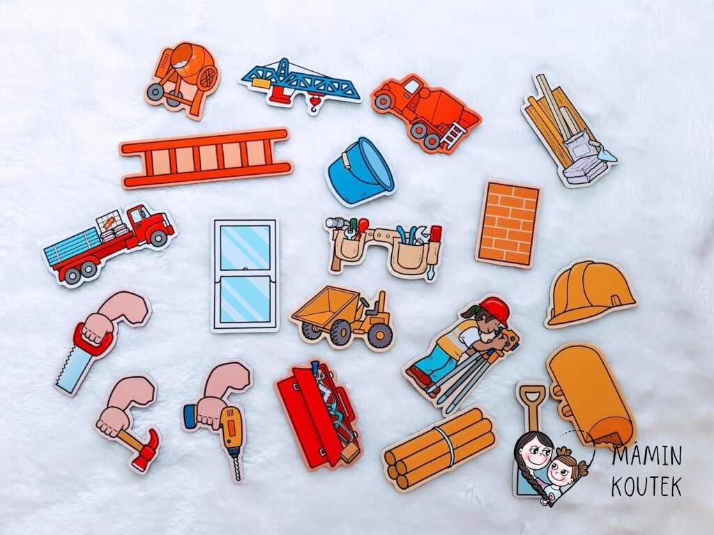 Knížka Stavba není jen o čtení, ale kombinuje v sobě také prvek hraní. Děti totiž mají k dispozici hned několik magnetek, které mohou různě na stránky umisťovat. Práce s magnetky je jednoduchá, takže ji zvládnout i malé děti. Procvičí si přitom motoriku a také rozvíjí představivost a kreativitu.