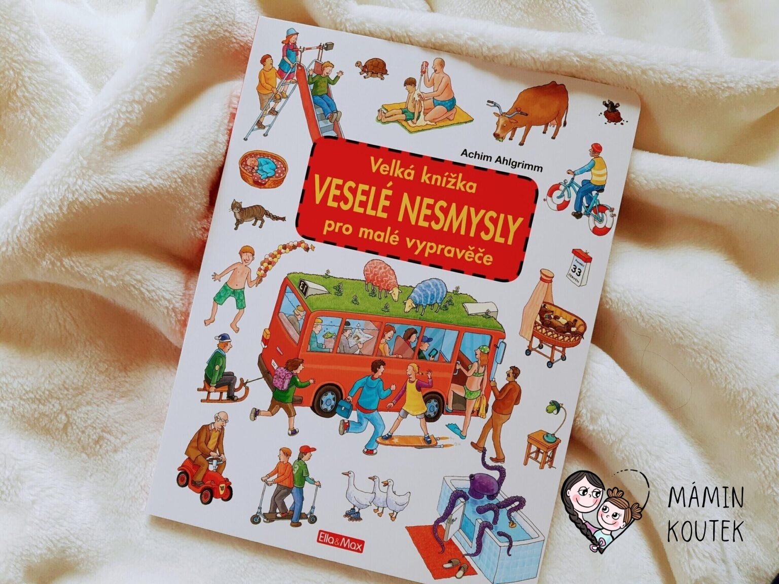 Nakladatelství Ella & Max vydalo už několik velkoformátových leporel. Známá je hlavně jejich série pro malé vypravěče, ze které jsem vám zde už představovala třeba knížku Na dobrou noc. Nyní díky spolupráci přidávám také další díl – knihu plnou nesmyslů, kde děti hledají, co je asi špatně.