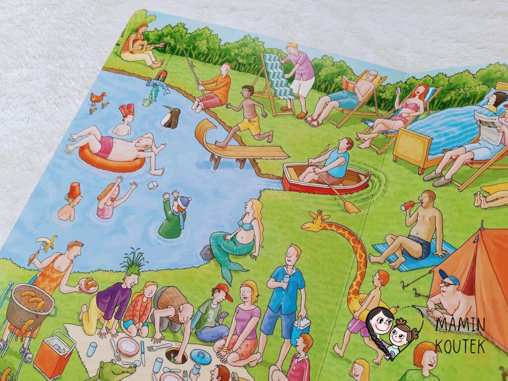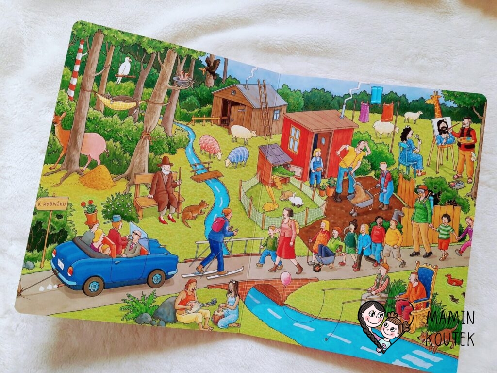 Kromě města se podíváme také do přírody. Na potůčku je nakreslený přechod pro chodce a dělící čára, rybář sedí při lovení na trůnu, po cestě se prochází lyžař a pán pracující na zahradě má 3 ruce…