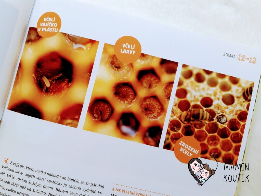 První tématem knihy je život včel. Děti se dozví, proč květiny vlastně potřebují včely, kde včely bydlí a kdo všechno žije v úlu (neboli jaké druhy včel existují). Zmíněn je také vývoj včel od vajíčka, přes larvu, až po dospělou včelu. A co vlastně dělají přes den? Co je jejich prací? Co je to rojení? A jak se včely mezi sebou dorozumívají?