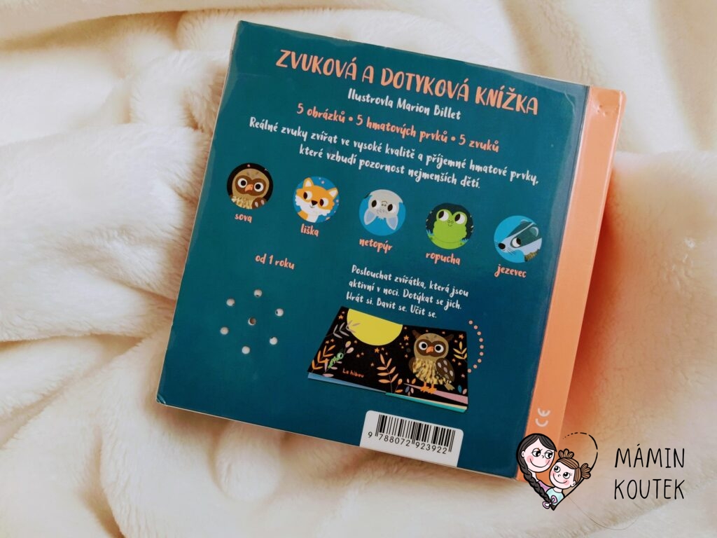 Na toto dětské leporelo jsem narazila náhodu v knihovně. Spojení zvukové a hmatové knížky jsem ještě neviděla, tak jsme ji dali šanci. A nejen že baví Natálku (8 měsíců), která si hraje hlavně s hmatovými prvky, ale zaujala i Beky (3,5 let), která naopak ráda spouští zvuky zvířat.