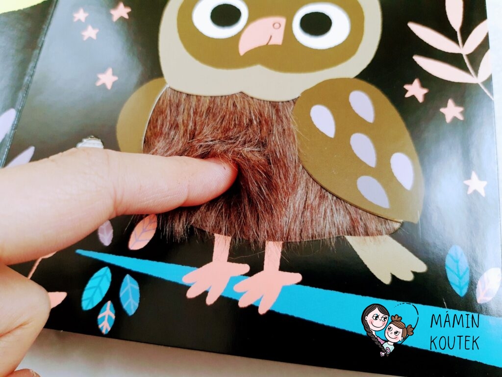 Jako první se děti seznámí se sovou a jejím houkáním. Zvukové tlačítko je vedle křídla.