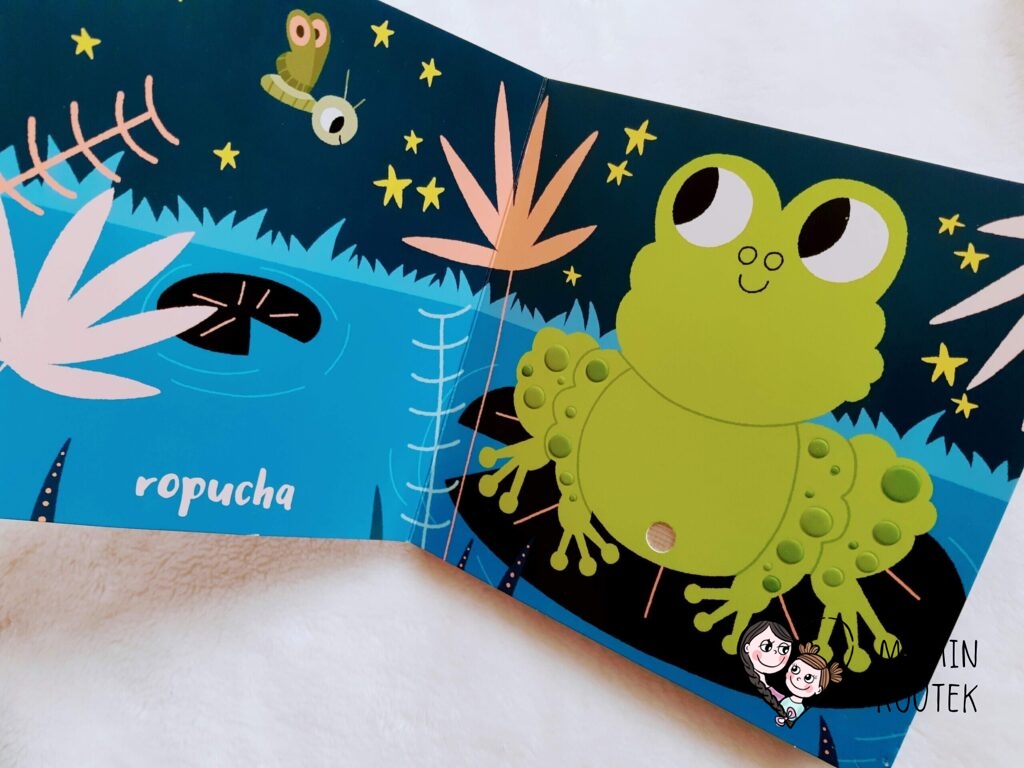 Líbí se mi také pojetí zvukových tlačítek – jsou malé (akorát na dětský prst), nenarušují celkový obrázek, ale přesto jsou snadno poznatelné. Nejsou navíc na principu, že by musely děti pořádně potlačit. Stačí jen lehce prst přiložit a asi 5 sekundový zvuk se spustí.