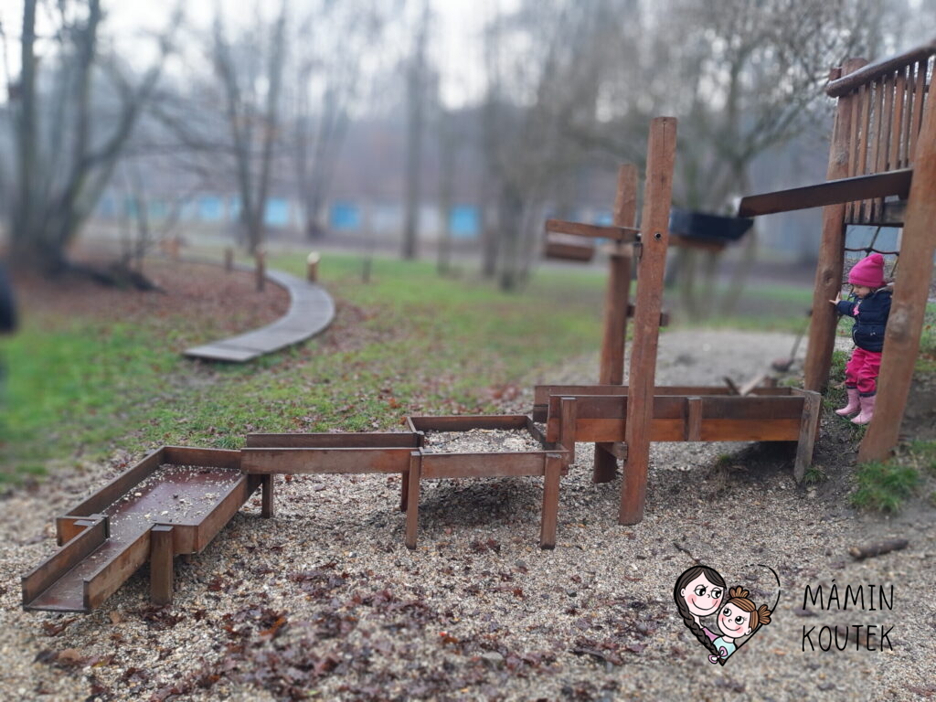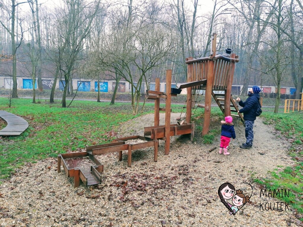 Zajímavá je také vodní dráha – tu jsme bohužel nemohli v zimě naplno využít. Ale v létě bude určitě zajímavá – stačí nanosit vodu z pár metrů vzdáleného potůčku…
