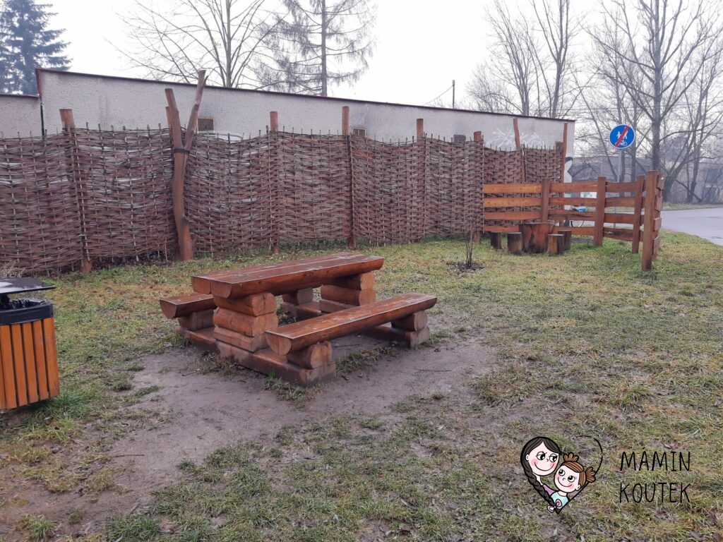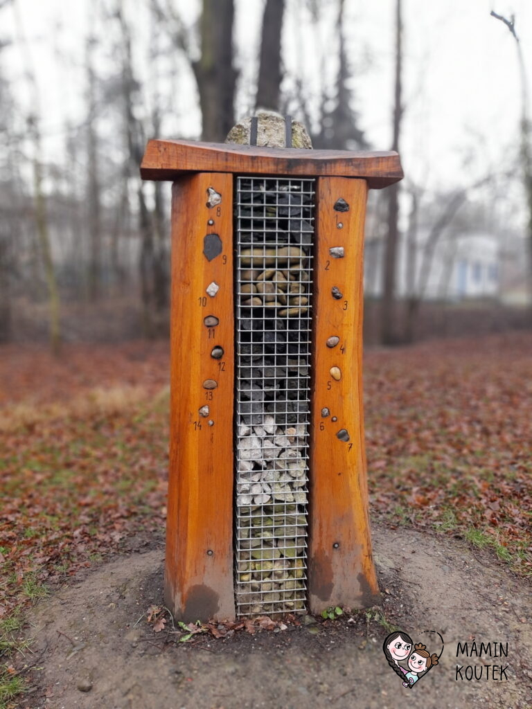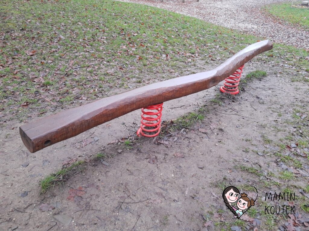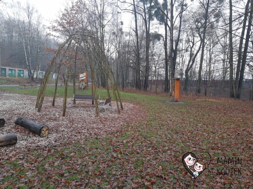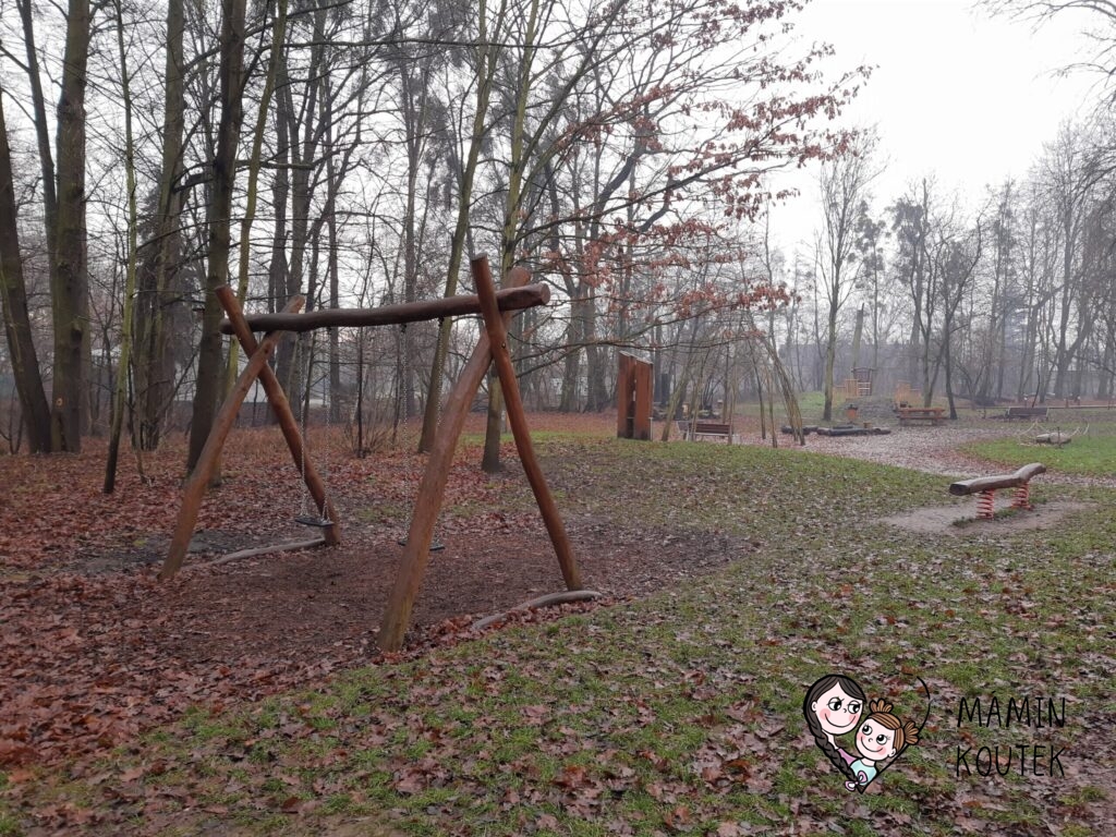 V parku je spousta zábavných a edukativních prvků pro děti – houpačka, pexeso, neposedná kladina…