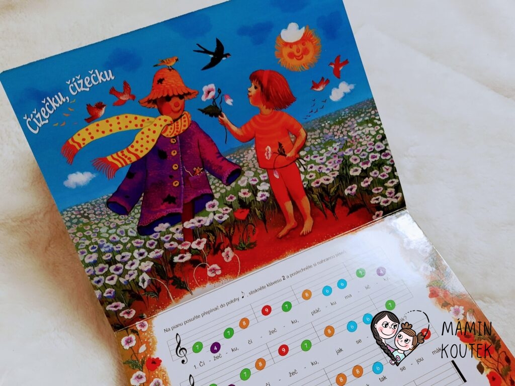 V knížce jsou zpracované české písničky pro děti interaktivní formou. Nechybí klasické pojetí – noty a text. K tomu je ale součástí také pianko, kde si děti mohou zkusit písně přehrát. Noty jsou zpracované také pomocí barev a čísel, takže není nutné umět hrát na klavír. Píseň si přehraje v podstatě každý (přibližně od 3 let).