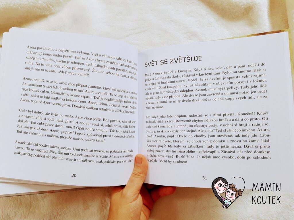 Dále na čtenáře čekají příběhy o tom, jak šla Libuška s Azorem na procházku, jenže potkali kolii. Azor se zleknul a utekl. Nebo jak Azor bojoval s kocourem či honil slepici, jak chodil na ryby a další povídky, přes které se dostaneme až k Azorově dospělosti.