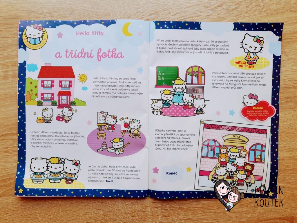 Časopis Hello Kitty potěší hlavně milovníky postavičky japonské kočičky s mašličkou. Ta děti celým časopisem provází, a to doslova na každé stránce. Děti si mohou s Hellou Kitty přečíst příběhy, vyluštit úkoly nebo něco vytvořit. Kromě toho se dozví také něco nového z našeho lidského života.