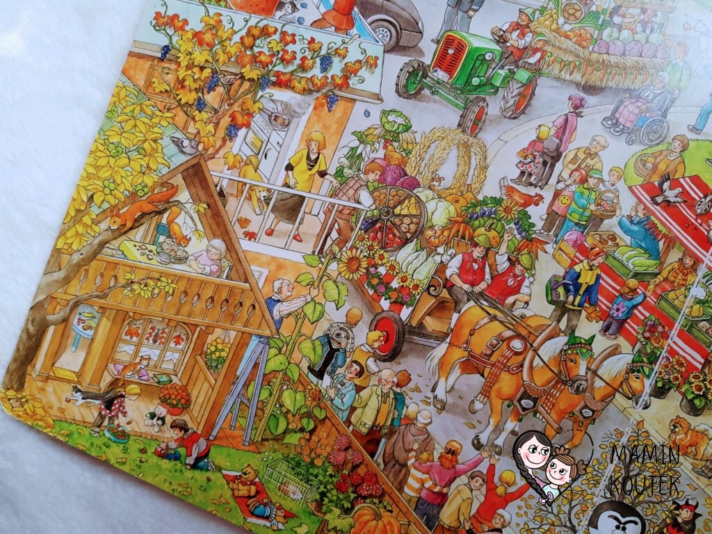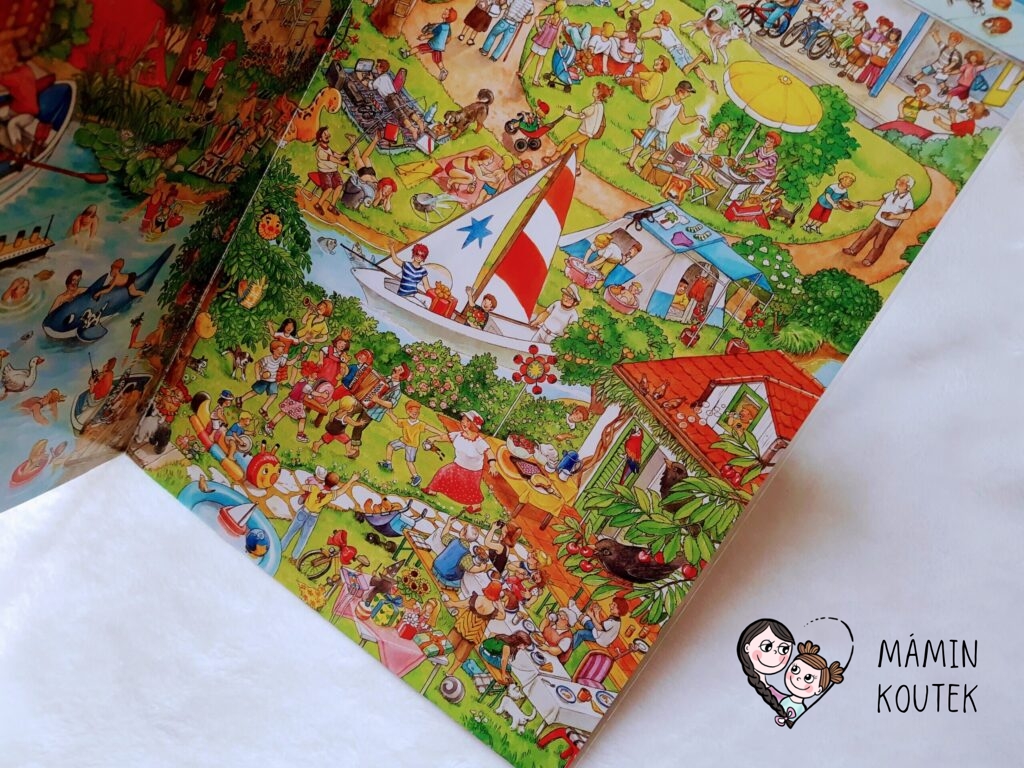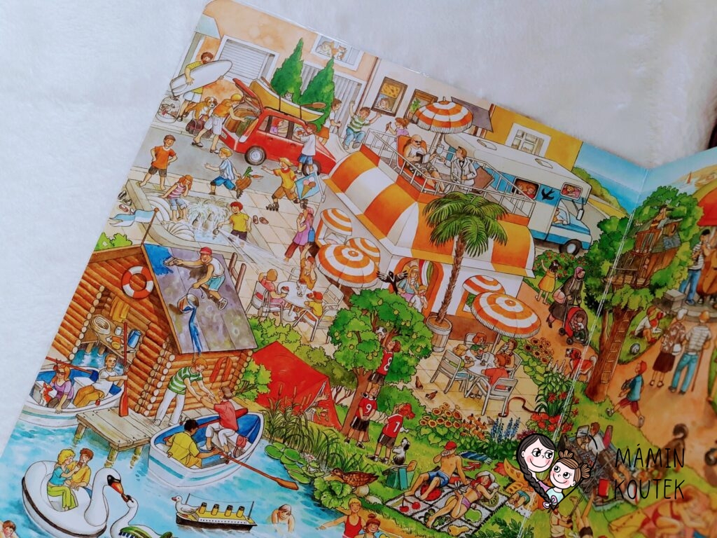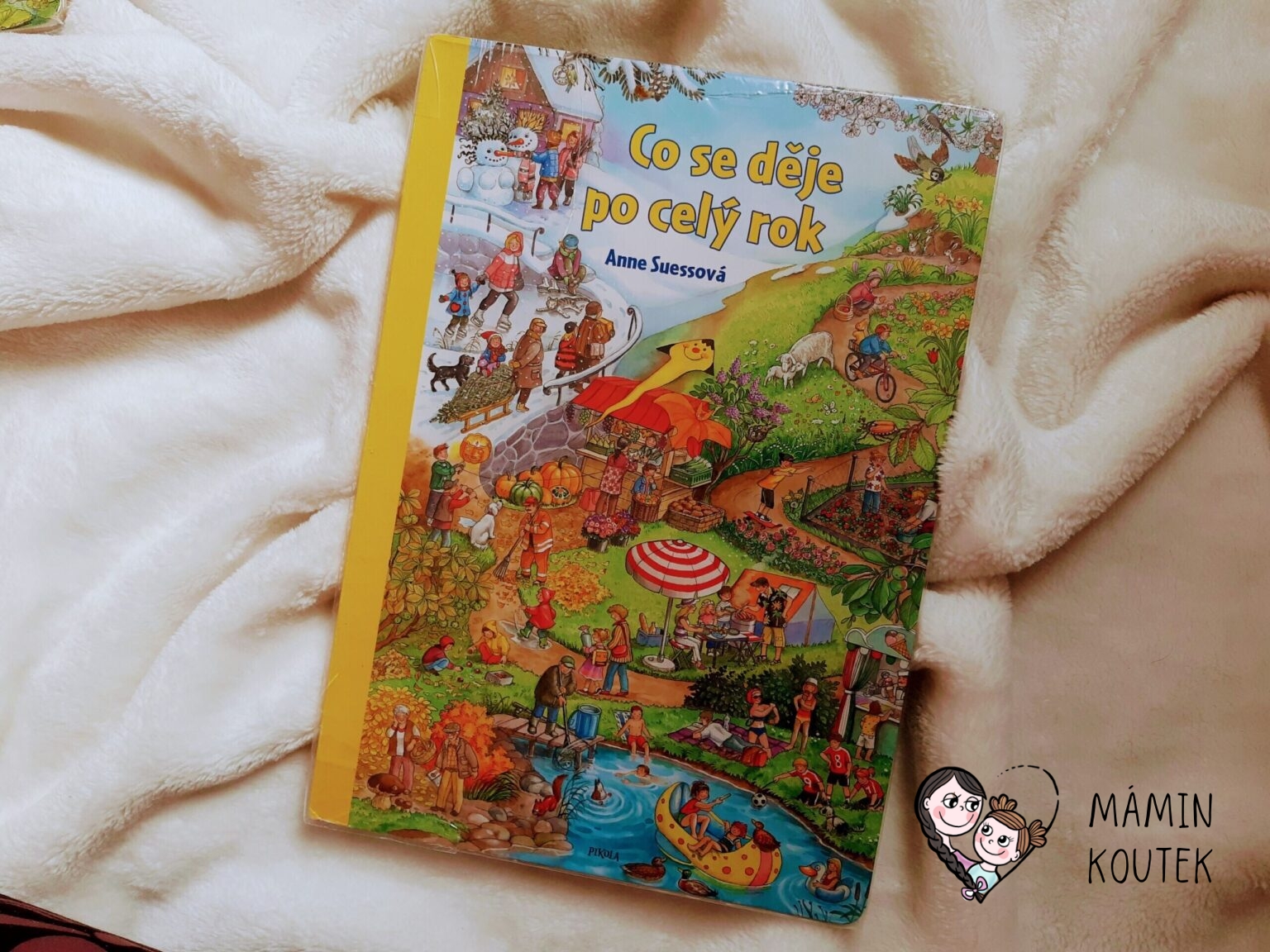 Kniha se zaměřuje na jednotlivá roční období. Najdeme v ní 4 dvojstránky a na každé jsou znázorněné aktivity typické pro tento čas. Jednotlivých výjevů je spousta, takže můžete s dětmi hledat, vymýšlet příběhy nebo třeba jen popisovat, co vidíte na obrázku.