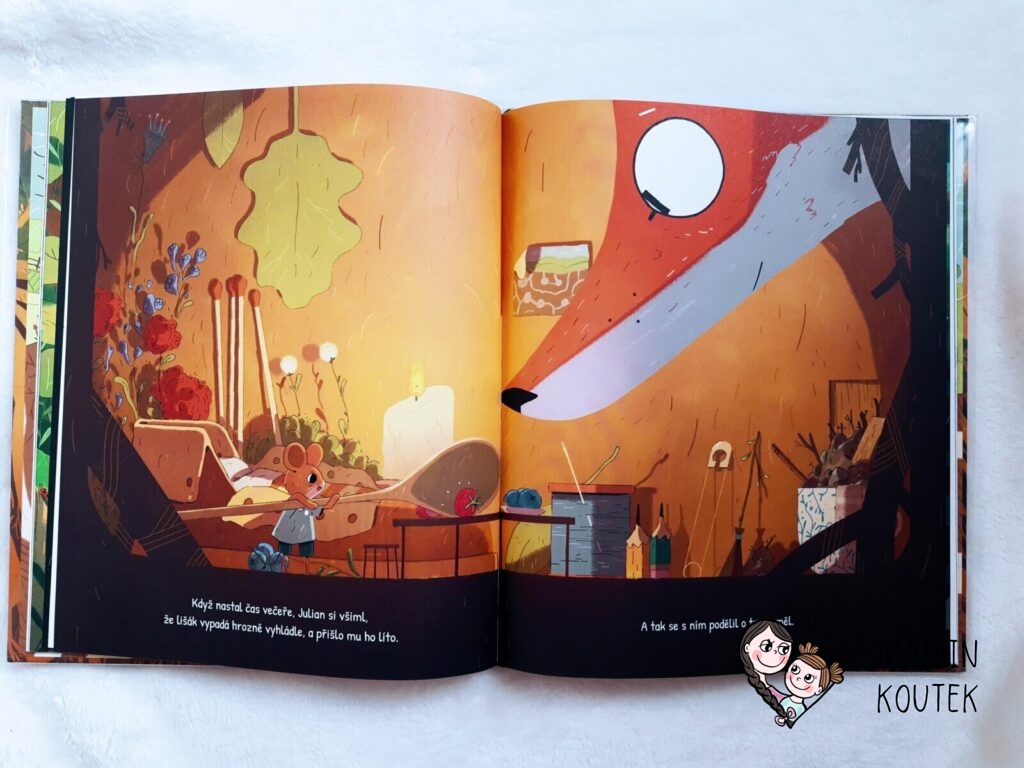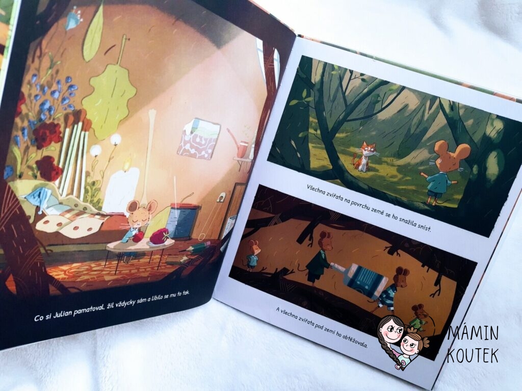 Příběhy pro děti nemusí být dlouhé, někdy stačí jen pár vět a je řečeno více než sáhodlouhým vyprávěním. A právě tato situace nastala u knihy Myšák jménem Julian. Kniha vypadá na první pohled obsáhle, ale uvnitř najdem především velké obrázky a ilustrace. A text jen pár slovy doplňuje to, co na stránce vidíme. Kniha je tak vhodná pro nejmenší čtenáře, protože je přečtená za chvilku a děti se při čtení nenudí, když obhlíží stále další a další obrázky. Navíc potěší určitě i začínající čtenáře, kteří si zvládnout knížku přečíst celou sami.