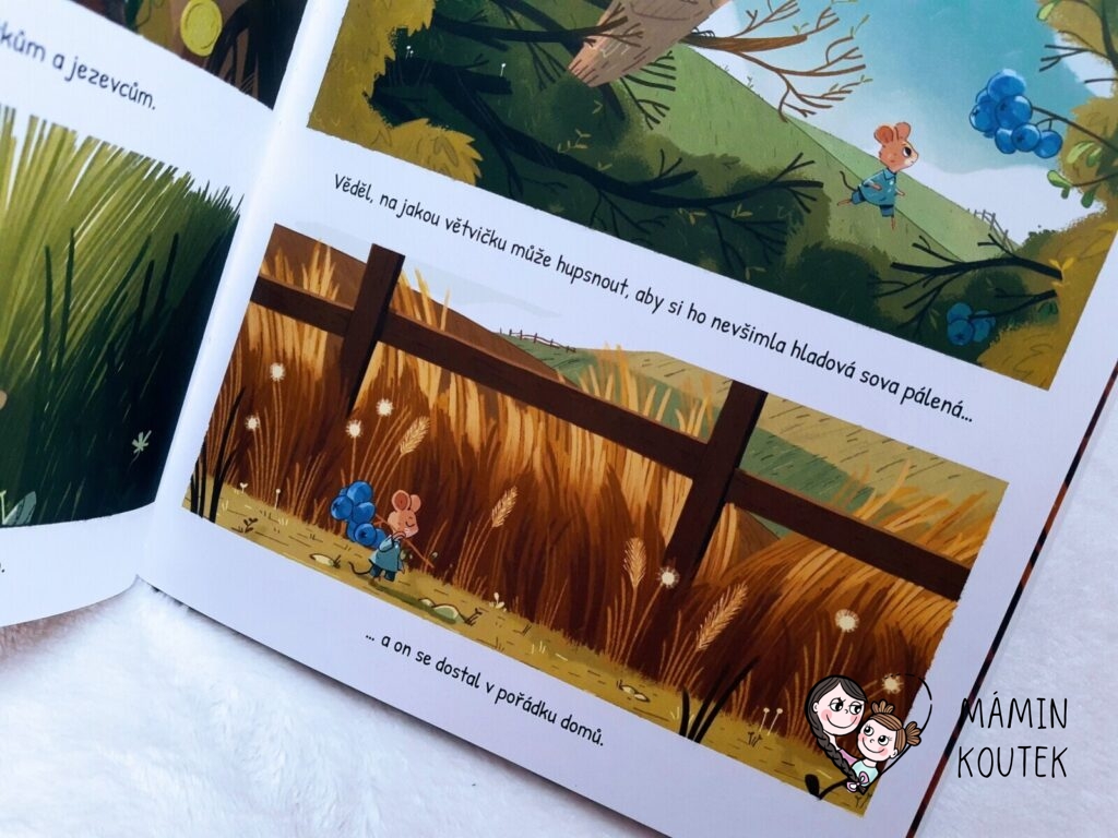 Ilustrace (hlavně malého myšáka) jsou milé a laděné především do hnědé, zelené a oranžové barvy, což dává knize trochu ojedinělý ráz. Na každé stránce je jiný formát – někde najdeme dva velké obrázky pod sebou, jinde několik malých nebo třeba jednu celostránkovou ilustraci. Každopádně kniha působí komixově a díky většímu množství obrázků se snadno čte předškolákům i mladším školákům. Písmo by možná pro začínající čtenáře mohlo být trošku větší, ale není to nic hrozného.