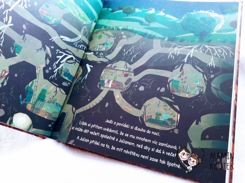 Kniha Myšák jménem Julian přináší příběh o malém samotářském myšákovi, který se ostatních straní. Naučí se žít sám za sebe, bez pomoci ostatních. A je mu tak dobře. Jenže jednoho dne ho nečekaně a nezvaně navštívit liška. A má na Juliana zálusk…